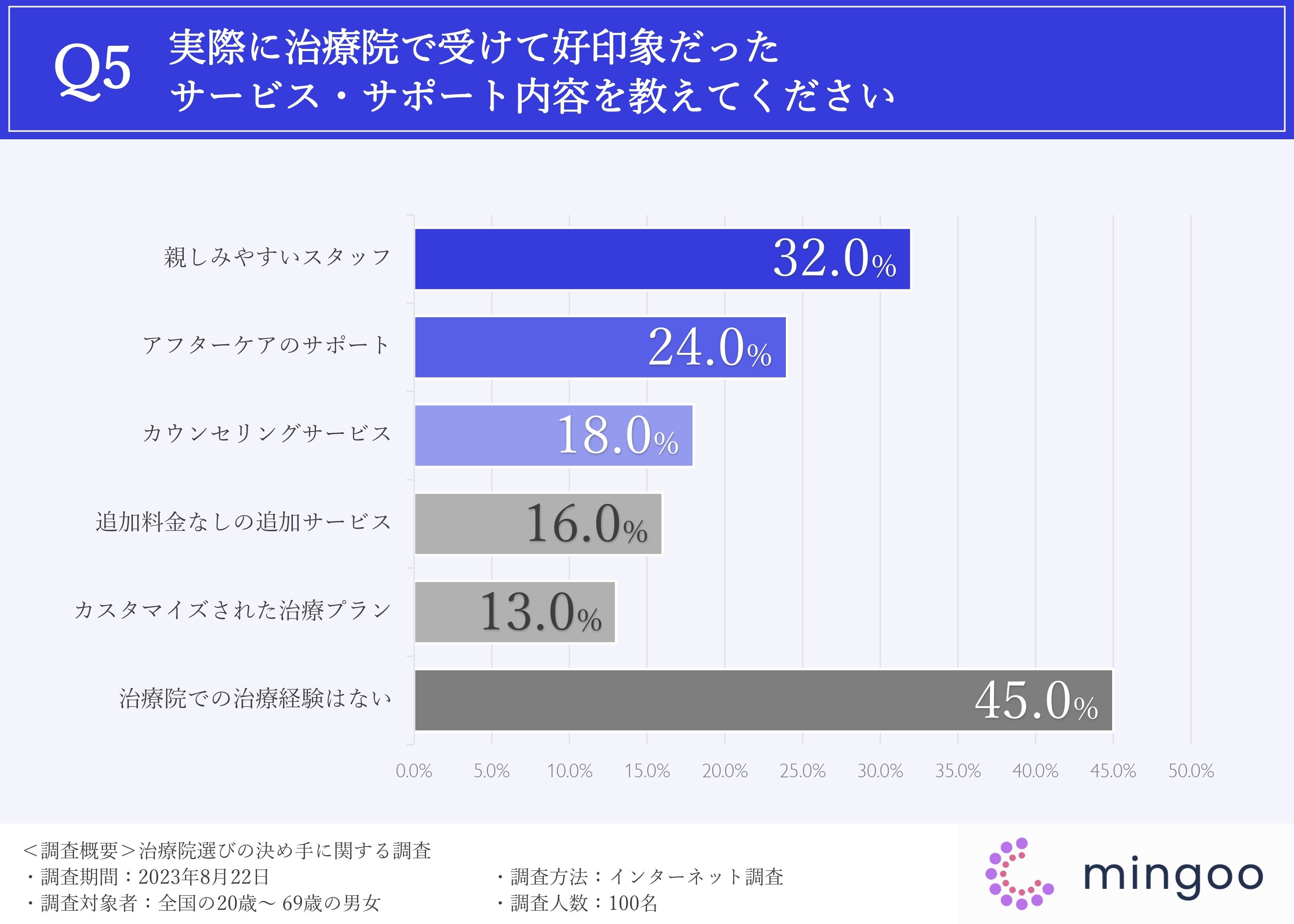次に、実際に治療を受けた方に好印象だったサービス・サポート内容を伺いました。