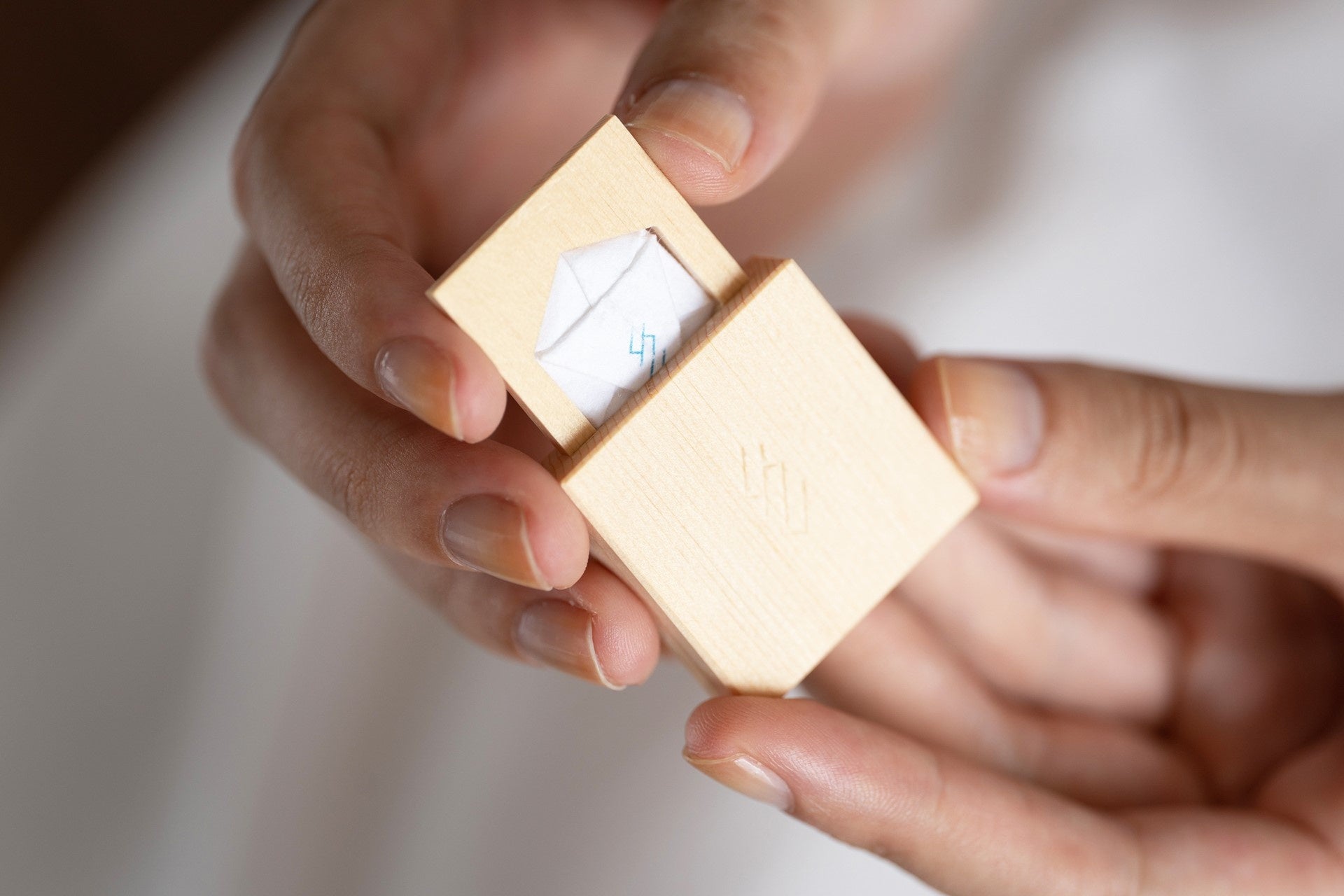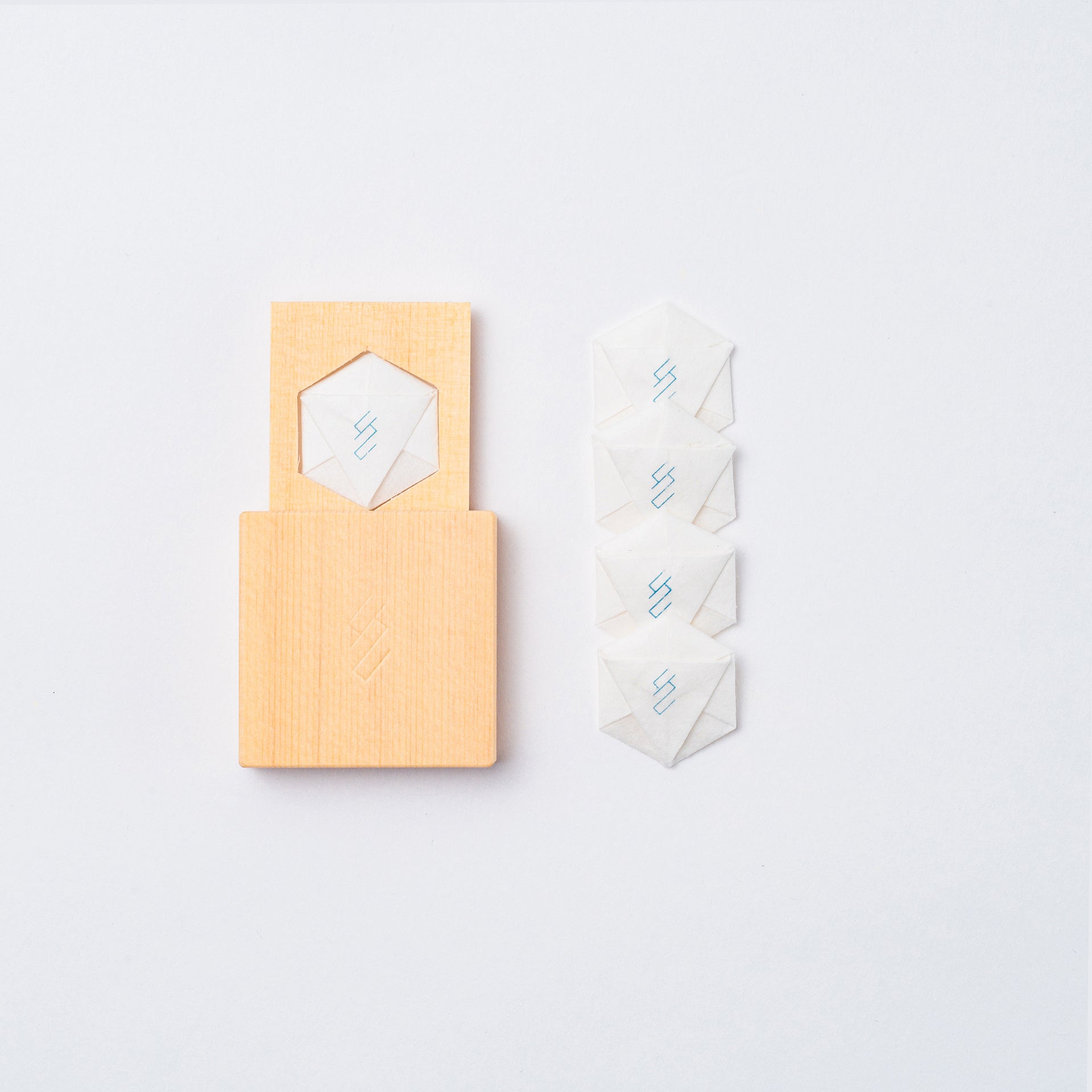 スピリチュアルなお守りとして、日常的に清められるキャリングソルト。ごくうすいスライド式の木曽桧のケースを吉祥文様の六角形にカットし、そこに和紙に包んだ塩とクリスタルパウダーを入れ、ポーチなどに入れて持ち歩ける形に仕上げました。麻袋付き。