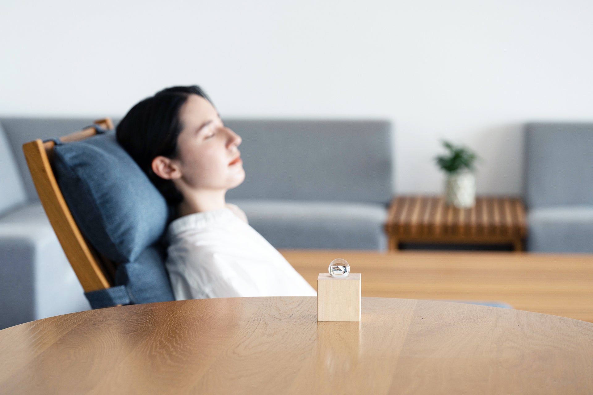手のひらに収まるほどの小さなサイズに仕上げたインテリアオブジェは、ベッドサイドなどパーソナルな空間に。クラックが極力少ない、透明度の高さを厳選した水晶玉と、自然のままの美しさを生かしたオーガニックなラフクリスタルを、バランスを計算した木曽桧の台座にセットしました。ナチュラル、コンテンポラリー、いずれの空間にも似合う洗練されたデザインです。