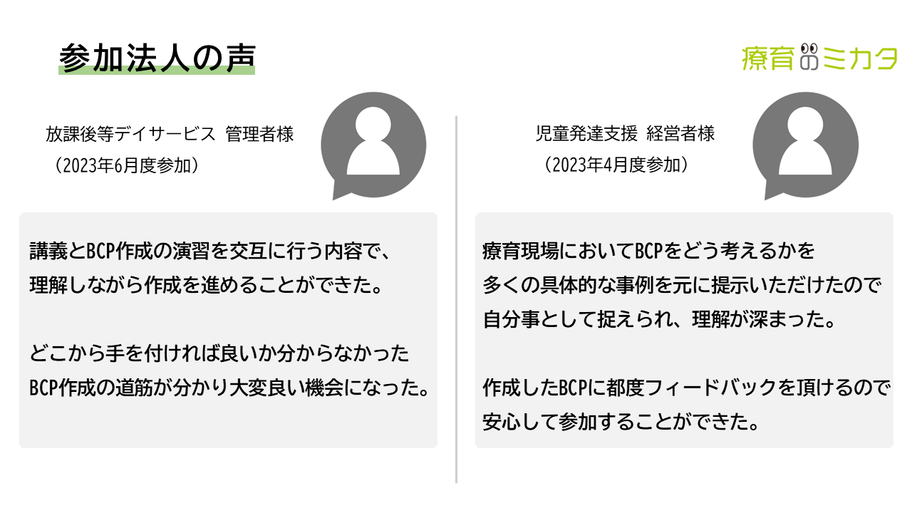 2024年4月の策定義務化が迫るBCP(事業継続計画)。放課後デイ・児童発達支援向けBCP策定オンラインワークショップを開催致します。