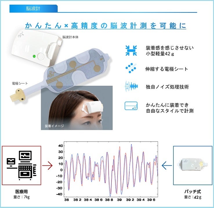 従来、脳波の計測は体に電極をつけたり皮膚に埋め込んだりする手間がかかり、解析にあたっては脳波の専門知識や解析経験の豊富なエンジニアによるデータ処理が不可欠であるなど、煩雑な作業を伴うものでした。
