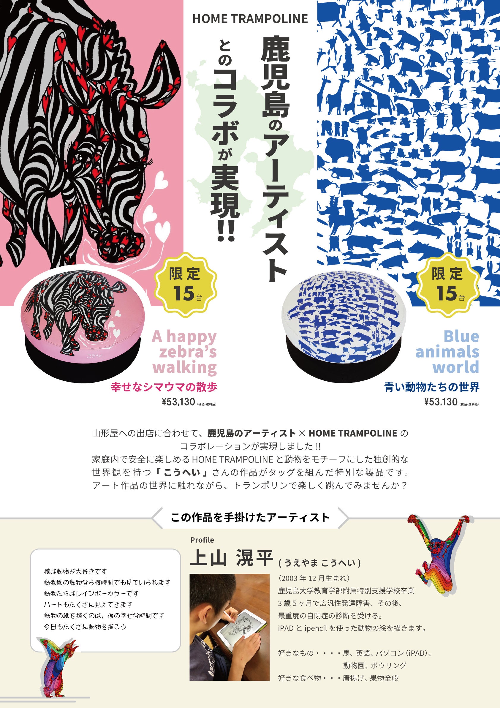 クラウドファンディングで大きな反響を呼んだ家庭用本格トランポリン「HOME TRAMPOLINE」が鹿児島県 山形屋『使ってみたいMONOフェア』に出展、鹿児島のアーティストとのコラボ商品も実現!