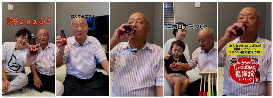 今回の企画「#うちのじいじばあば最強説」は、子どもや孫と一緒に趣味を元気に楽しむ最強なじいじ・ばあば世代にフォーカス。全世代に親しまれている「オロナミンC ドリンク」を通じて、元気ハツラツ!をお届けすることを目的とし、始動しました。