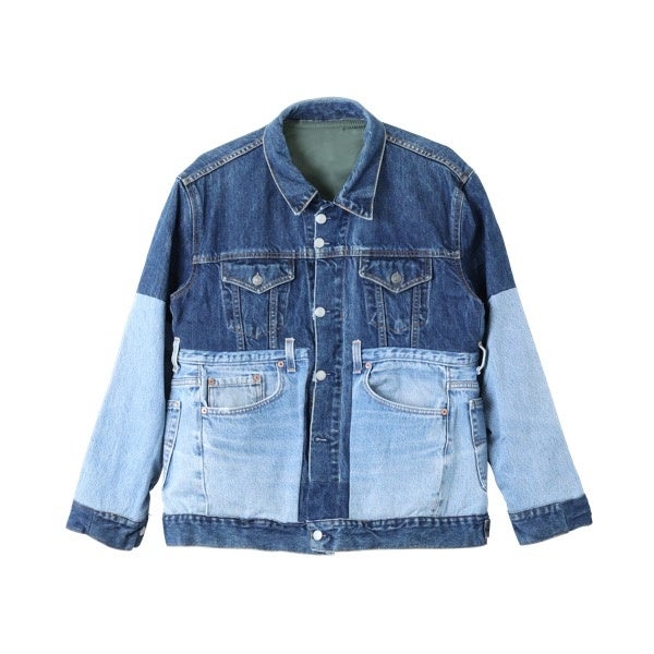 デニムジャケット/デニムパンツの2種類を再利用して上下で分けたコンビネーションジャケット