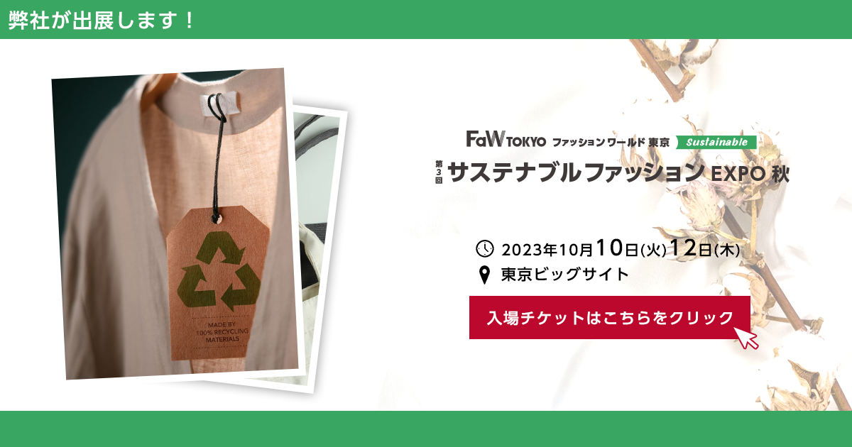 「FaW TOKYOファッションワールド東京」「第3回サステナブルファッションEXPO秋」に出展いたします。