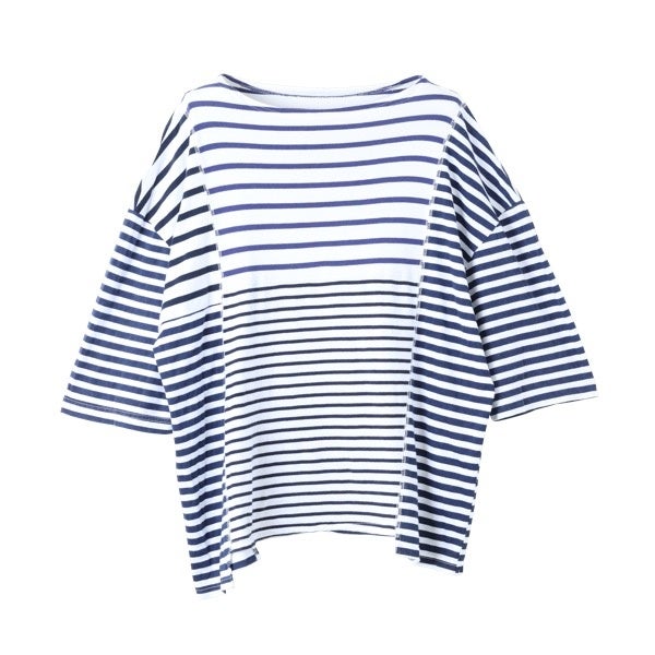 4種類の柄が違うボーダーカットソーを再利用したオーバーサイズのボートネックカットソー