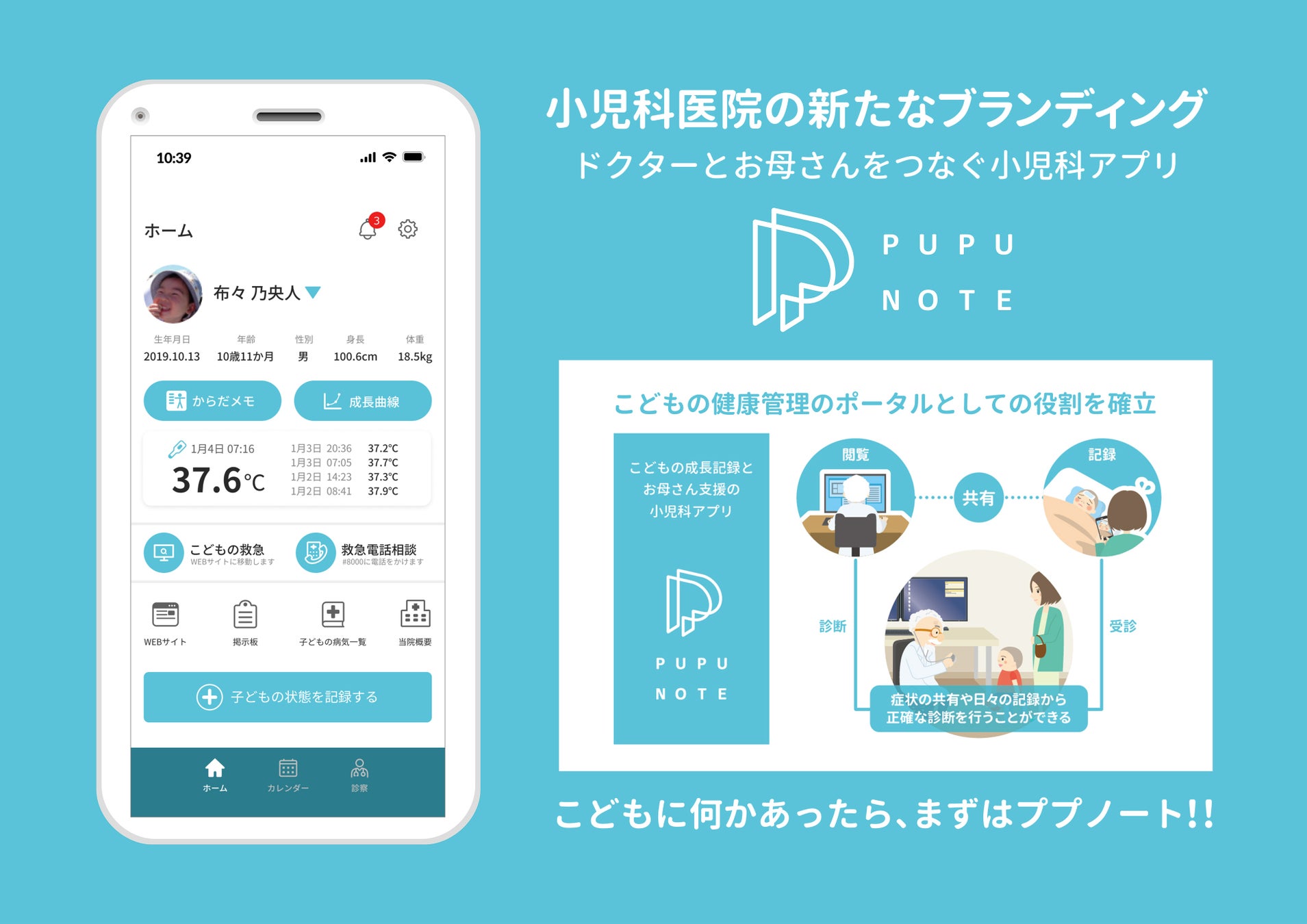 小児科クリニックのオリジナルアプリとして、子どもの体調の変化や症状を記録し、かかりつけクリニックの医師との情報共有出来るアプリ「ププノート」が特許を取得いたしました。