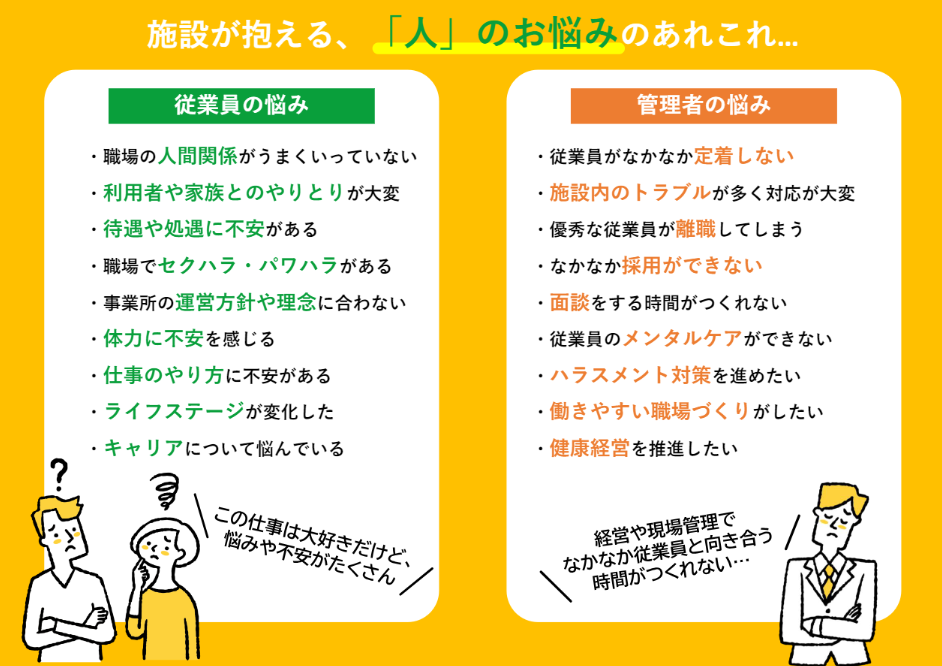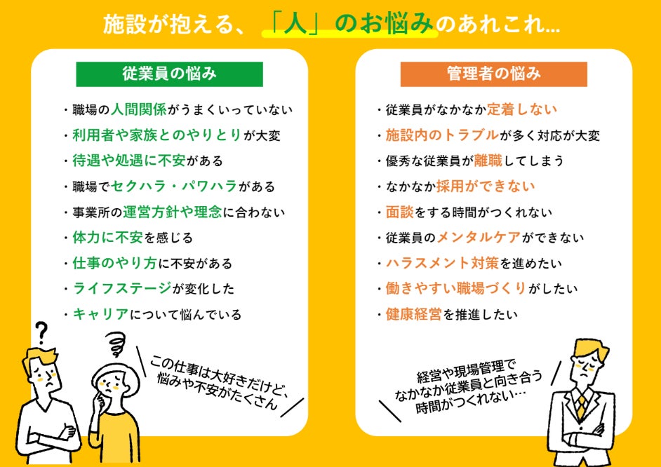本来、こういった「人のマネジメント」や「ケア」を担うのは管理職ですが、管理職もまた、管理者 兼 現場従業員として日常業務に忙殺されていることがほとんど。これでは、従業員のメンタルケアにまで時間を割くことはできません。