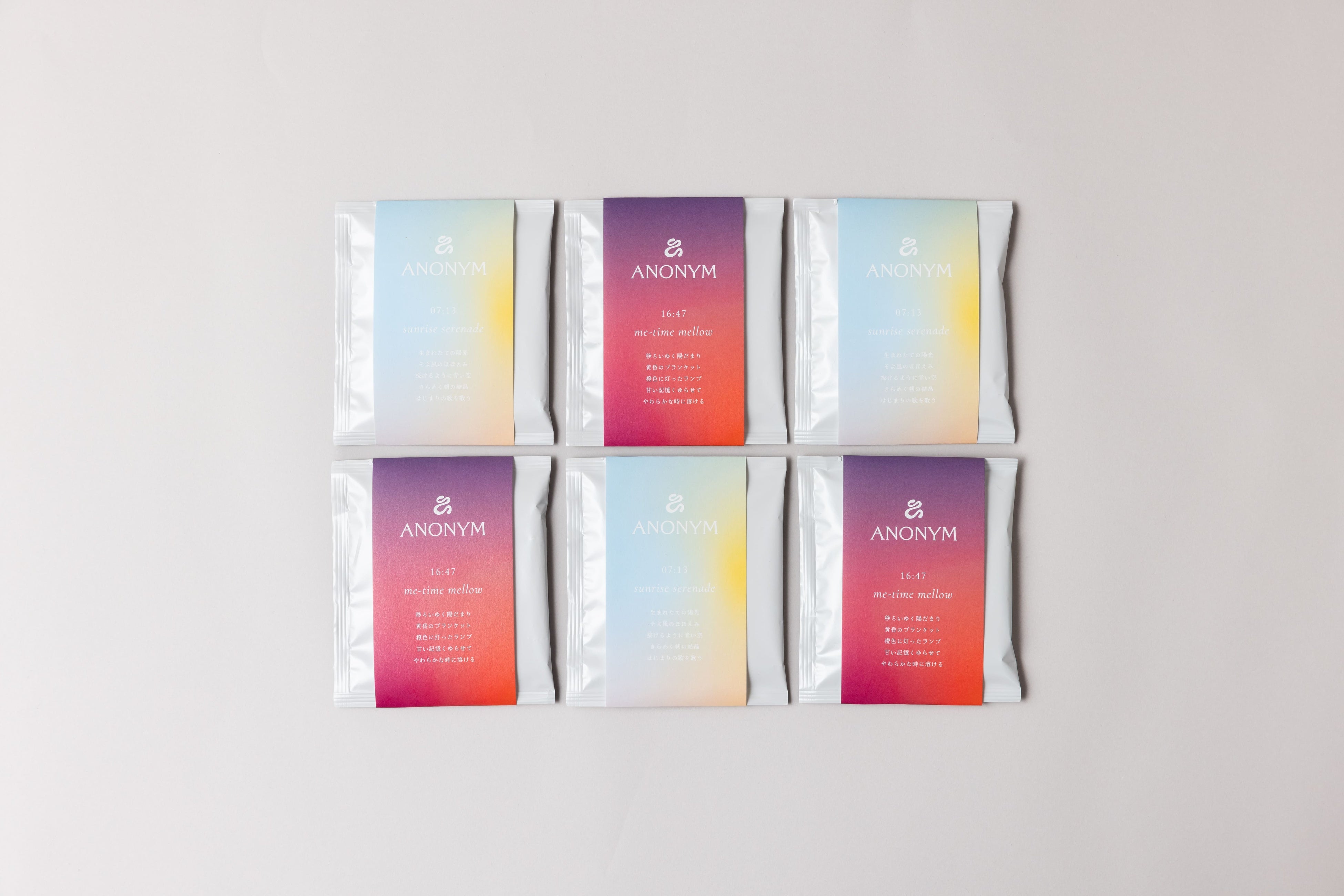 今回のリリースでは、新しい一日の始まりを祝福する「07:13 sunrise serenade」と、夕暮れ時のゆるやかな時間に浸る「16:47 me-time mellow」という2種のブレンドを制作。対照的な香りや味わいを、時間や気分に合わせてお楽しみいただけます。