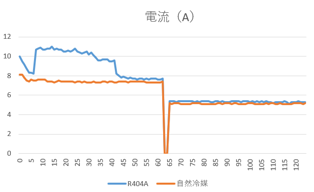 ※63分に予冷設定温度の-30℃になったため、一旦送電を中止している