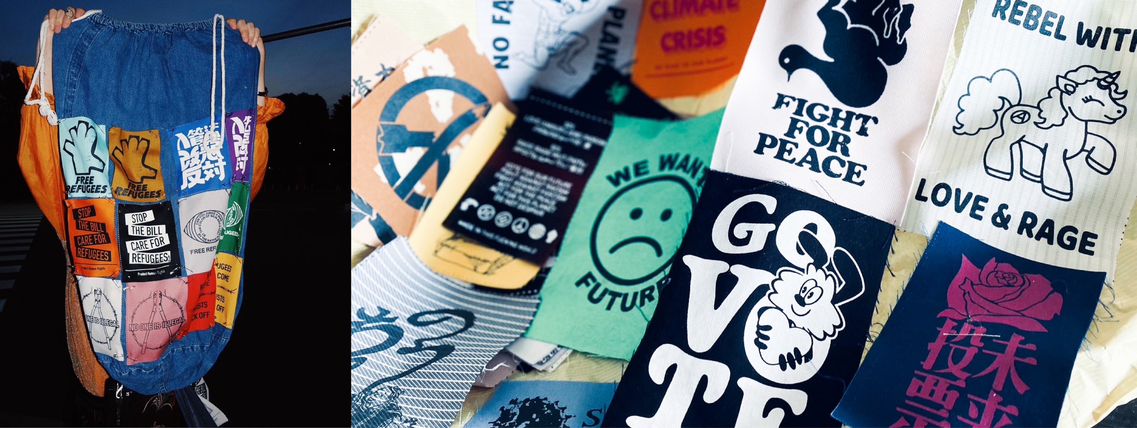 DEPT代表/アクティビストの eri さん監修のもと、クラウドファンディングのリターンの品としてオリジナルのパッチを制作を予定しています。オピニオンパッチとは、自分らしい様々なオピニオンをファッションの中にさりげなく取り入れて、自由に表現できるアイテムです。(画像はイメージです)