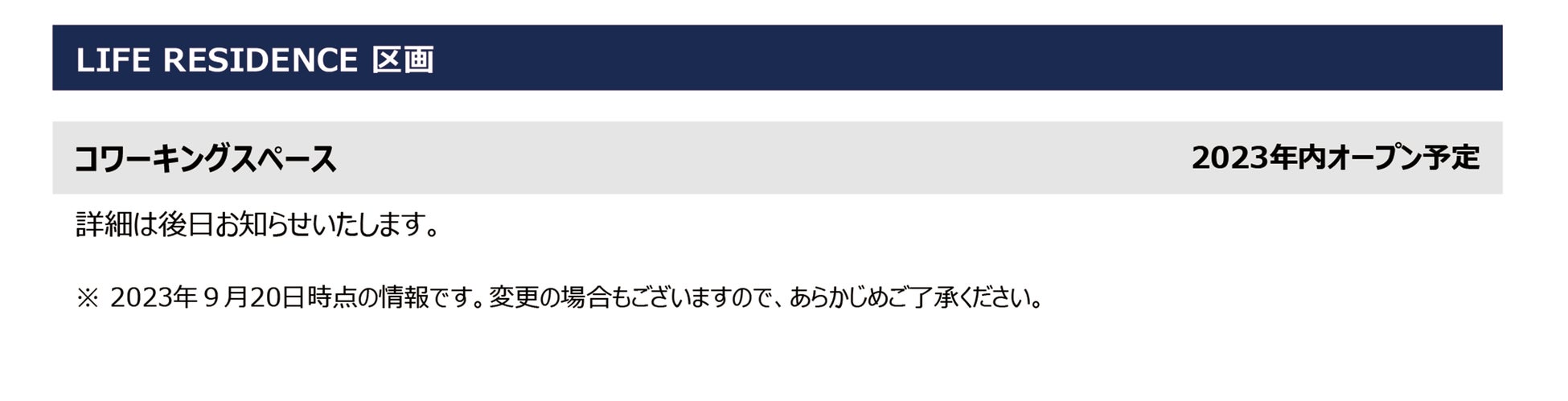 また、新たに6テナントの出店が決定し、LIFE RESIDENCE区画につきましては、2023年9月26日(火)に先行オープンする予定です。