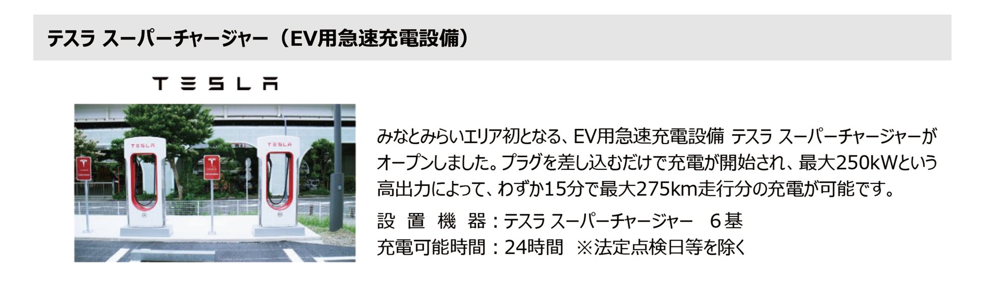 ※ EV用急速充電設備 有(テスラ スーパーチャージャー6基)