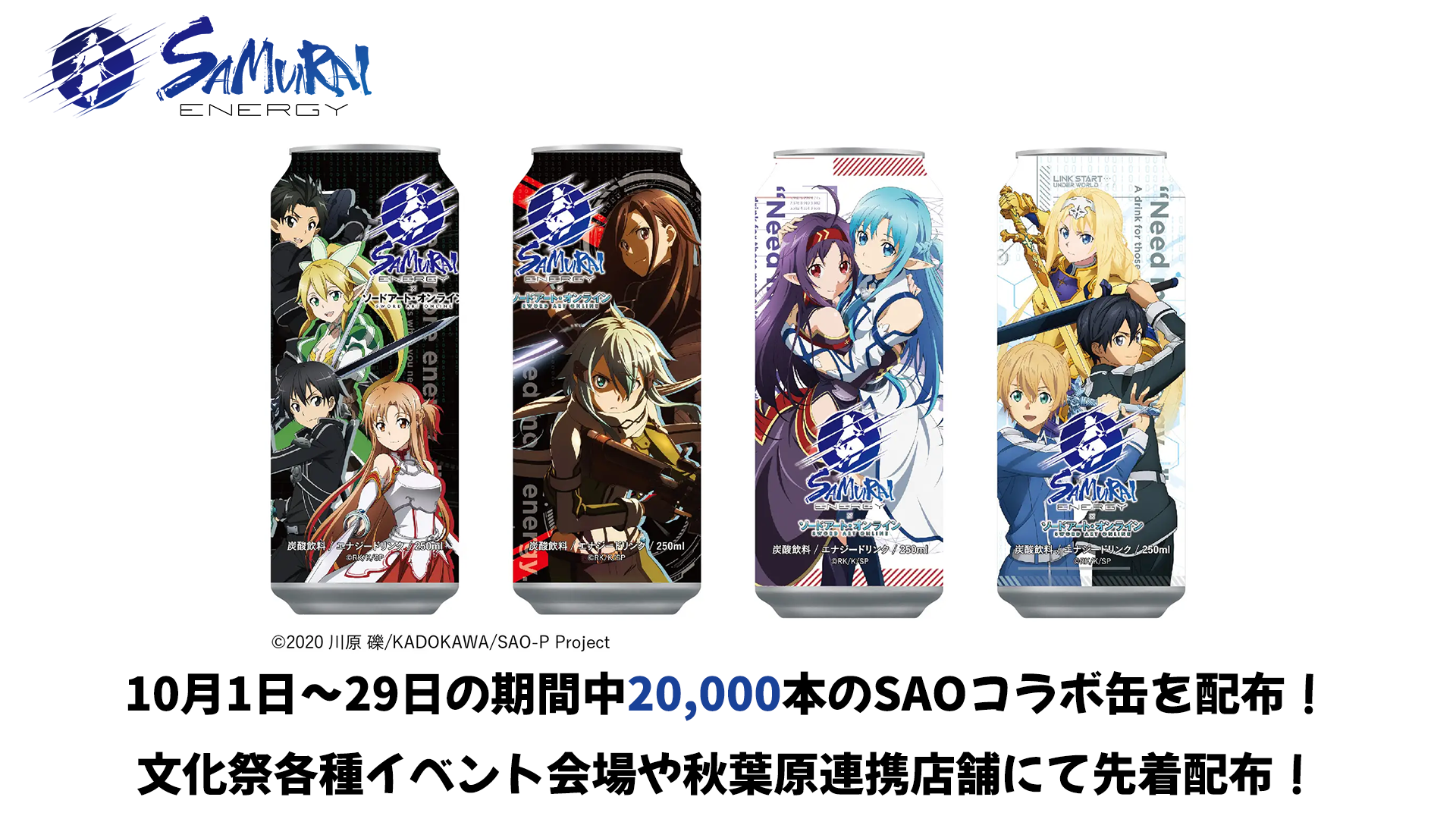 内容:AKIHABARA文化祭期間中に連携店舗や各イベント会場にてサムライエナジーSAOコラボ缶を先着20,000本プレゼント!