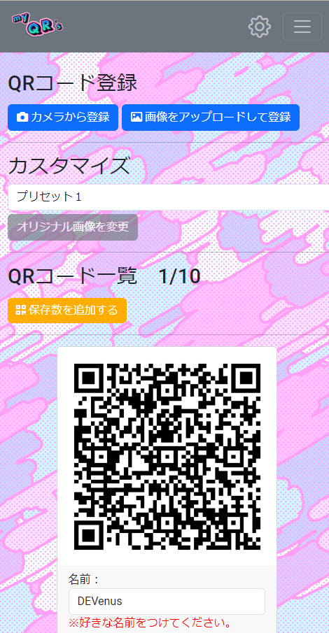 QRコードは1アカウントにつき3つまで登録できます。