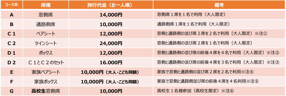 座席は親子ボックスやペアシートもご用意。普段乗れない貨物線ばかりを走る電車の旅!