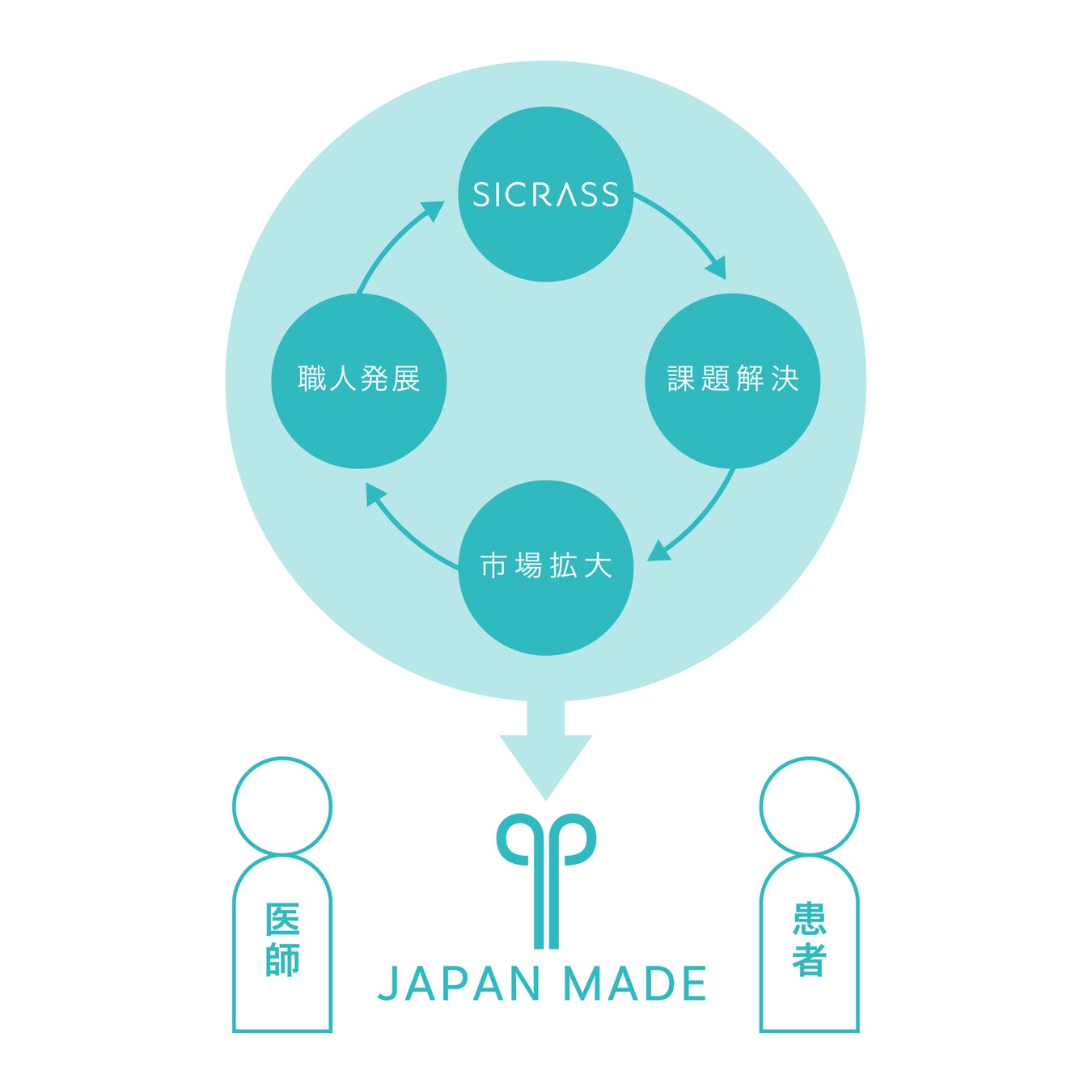 わたしたちはSICRASSを通じてものづくり人材が育つサイクルをつくり、国産手術器械の生産を持続可能なものにし医師や患者に提供していきます。
