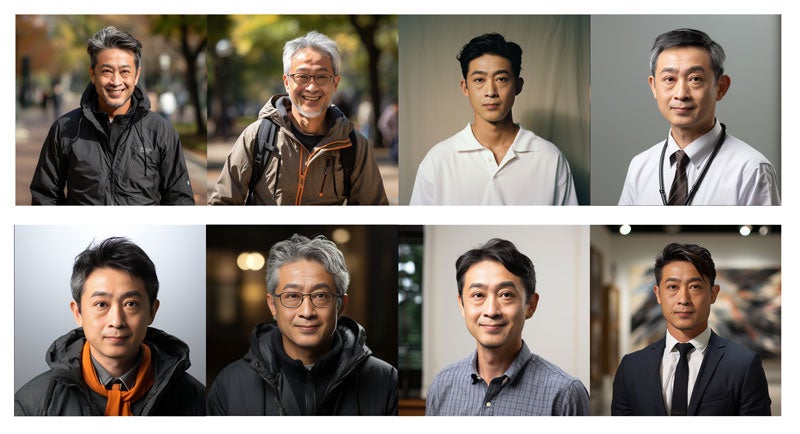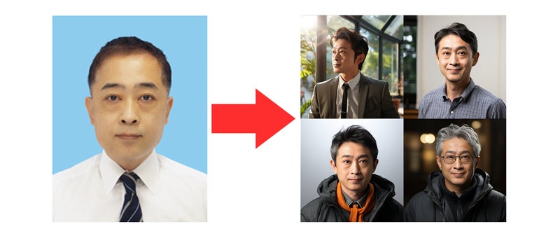 たった1枚の証明写真からAI画像生成によりヘアースタイルカタログを生成