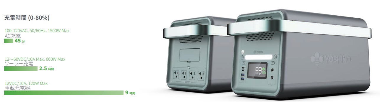 YOSHINOは世界で初めて固体電池を搭載したポータブル電源を開発し、現在も世界で唯一の固体電池ポータブル電源メーカーです。