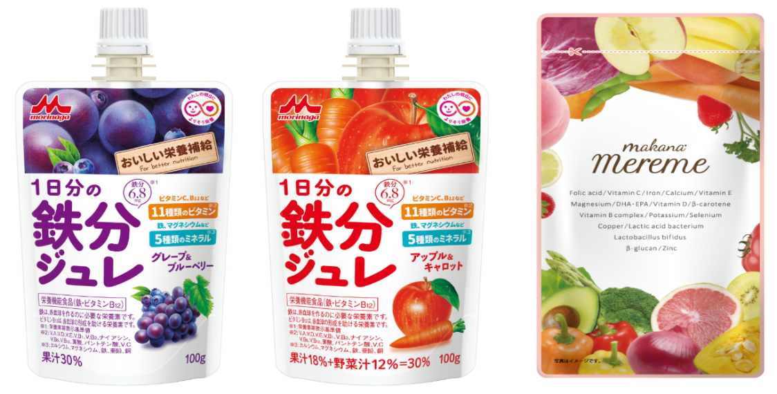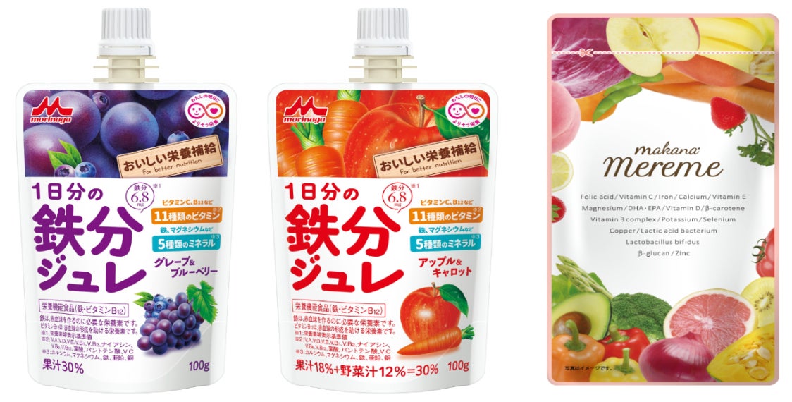 森永乳業 1日分の鉄分ジュレ:1セット(グレープ&ブルーベリー、アップル&キャロット)