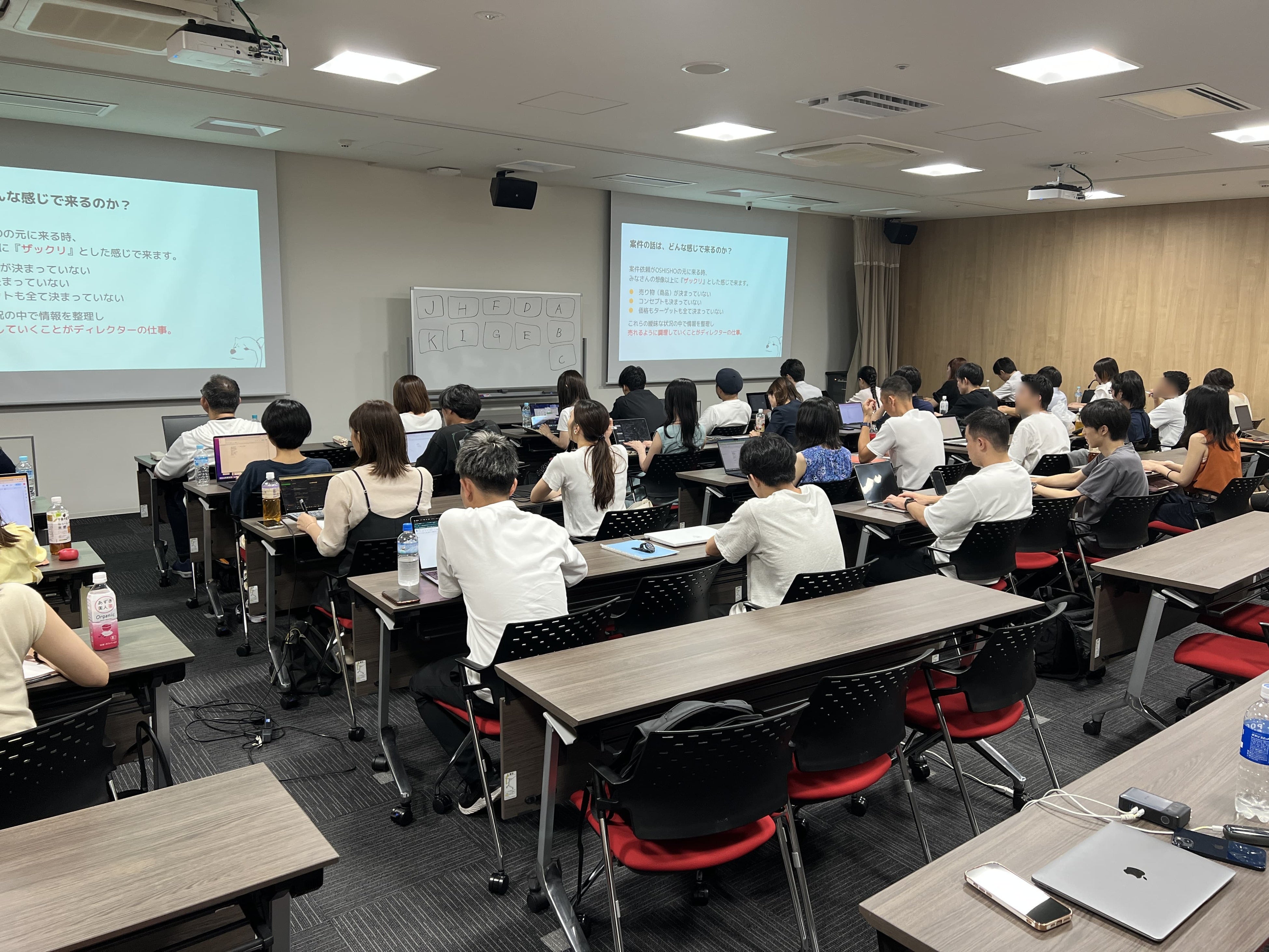 また、各グループで1人デイレクターを決めて時間管理や推進力を試す機会も設けられ、実際のDXコンサルタント業務に必要なスキルも実践的に取り組める環境でした。