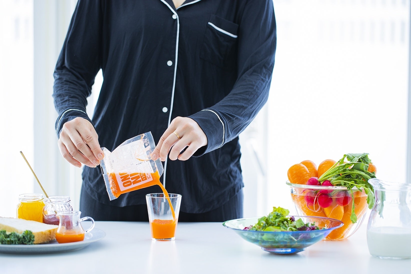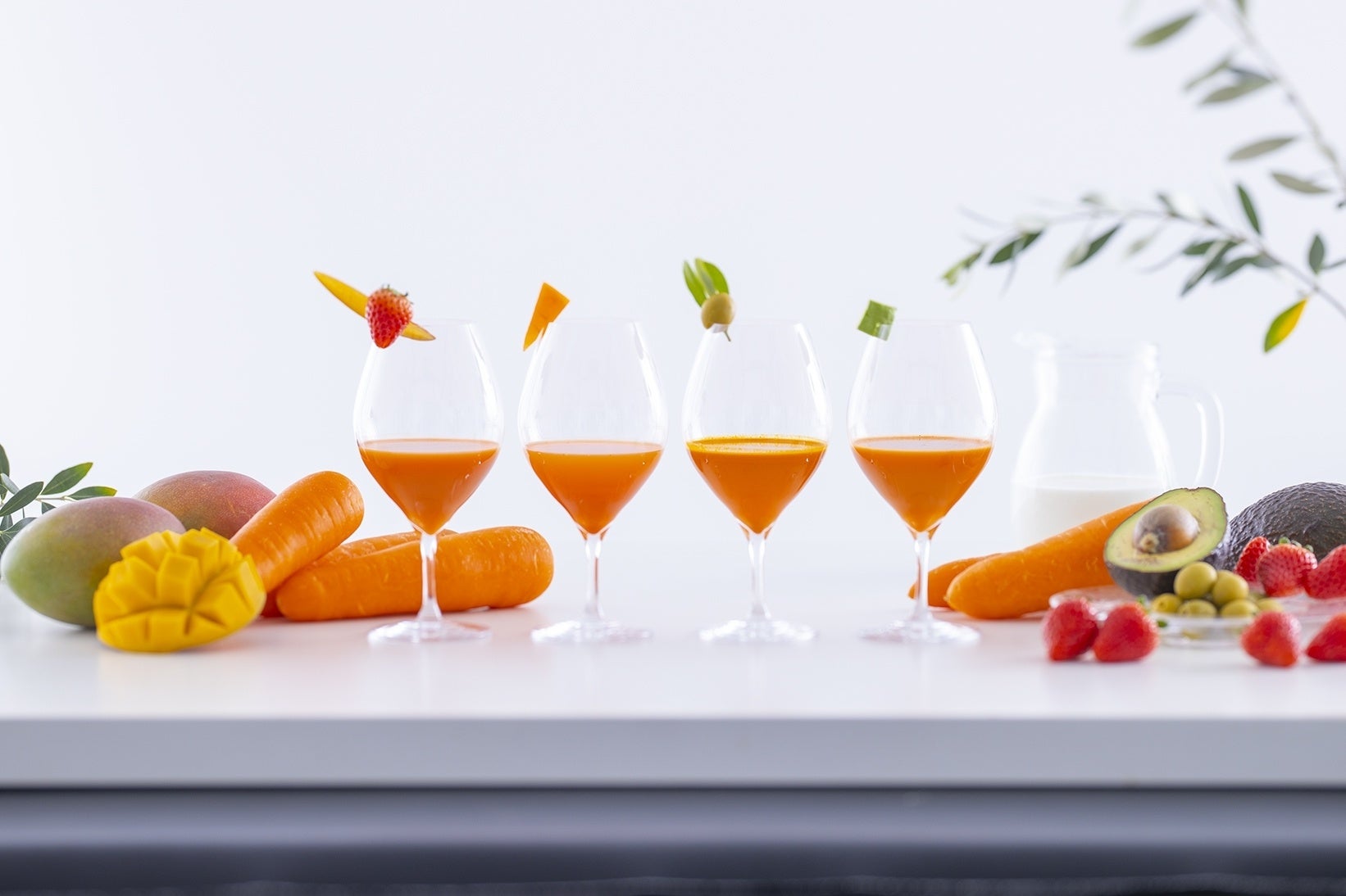 化学肥料・農薬不使⽤で栽培から冷凍まで国内⼀貫⽣産の無添加にんじんジュースは、にんじん本来の甘さを楽しめるスタンダードから、オリーブやアボカド入りのもの、葉酸を多く含むアボカド・マンゴー・イチゴをブレンドしたものまで、バラエティに富んだラインナップです。