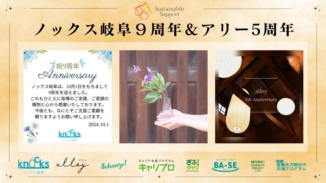 2024年10月1日、サステイナブル・サポートが運営する就労移行支援事業所ノックス岐阜は9周年、就労継続支援B型事業所アリーは5周年を迎えました。これまで支えてくださいましたすべての皆様に心より感謝申し上げます。
