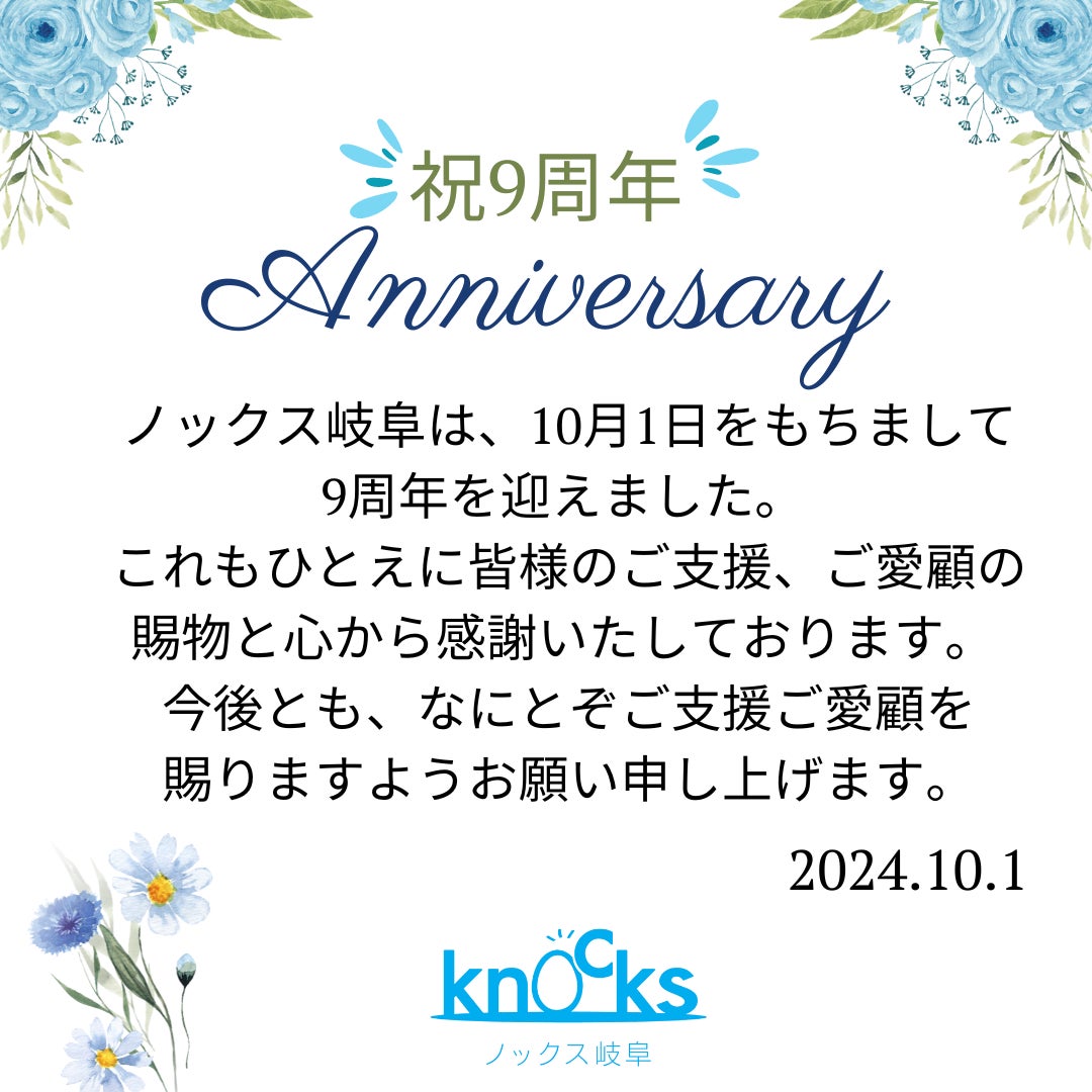 本日、就労移行支援事業所ノックス岐阜は9周年を迎えました。