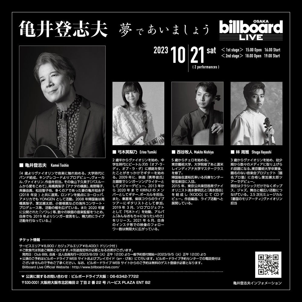 亀井登志夫『夢であいましょう』コンサート @billboard LIVE OSAKA 2023年10月21日(土)