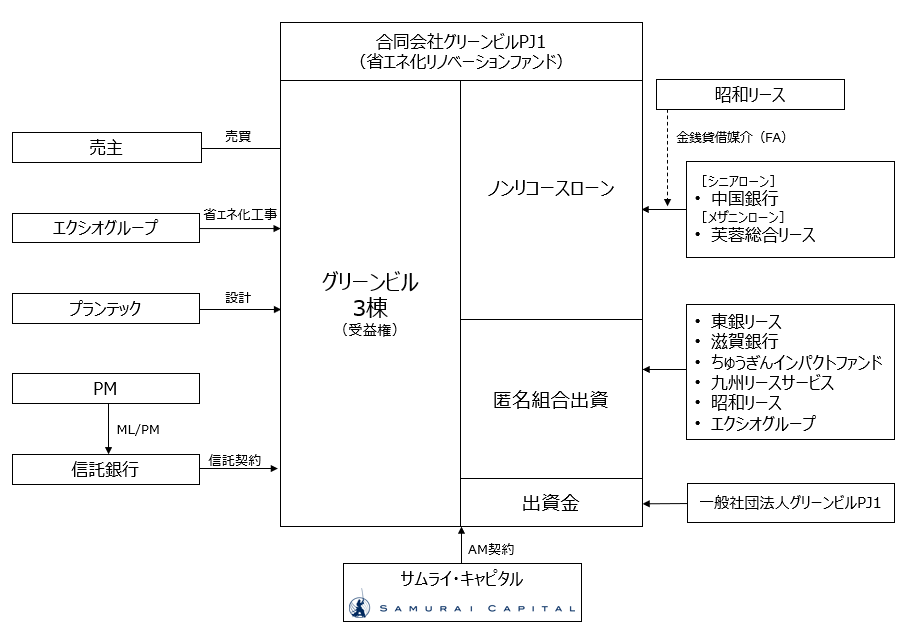 サムライ・キャピタル株式会社(東京都港区、代表取締役 社長 青山 健、以下、「当社」)は、東京都内の既存オフィスビル3棟について、アセットマネージャーとして、SPC(合同会社グリーンビルPJ1)を通じ省エネ化工事を行い、BELS(※2)☆☆☆以上の認証を取得することを目的としたファンド(以下、「本ファンド」)を組成しました。