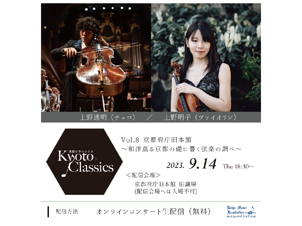 9/14【Kyoto×classics(京都クラシックス)Vol.8】歴史ある京都の地×クラシック音楽が融合したコンサートを無料配信