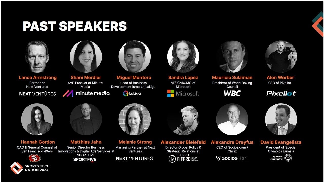 イスラエルのテルアビブに本社を置く国際的なスポーツ・イノベーション・グループ。 エンド・ツー・エンドのソリューションを通じて、スポーツ団体、新興企業、企業にテクノロジーへのアクセスやノウハウを提供し、パフォーマンスの向上、国際的な露出の獲得、イノベーションの最前線での地位確立を目指す。