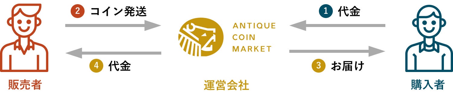 コインコレクター、コイン投資家間で安⼼・安全に、より⾃由にコインを売買することを⽬的に構築された新しいマーケットプレイスです。コインの発送やお届け、代金の支払いをACMが仲介することで、個人間取引でありがちな“あらゆるトラブル”を防ぎます。