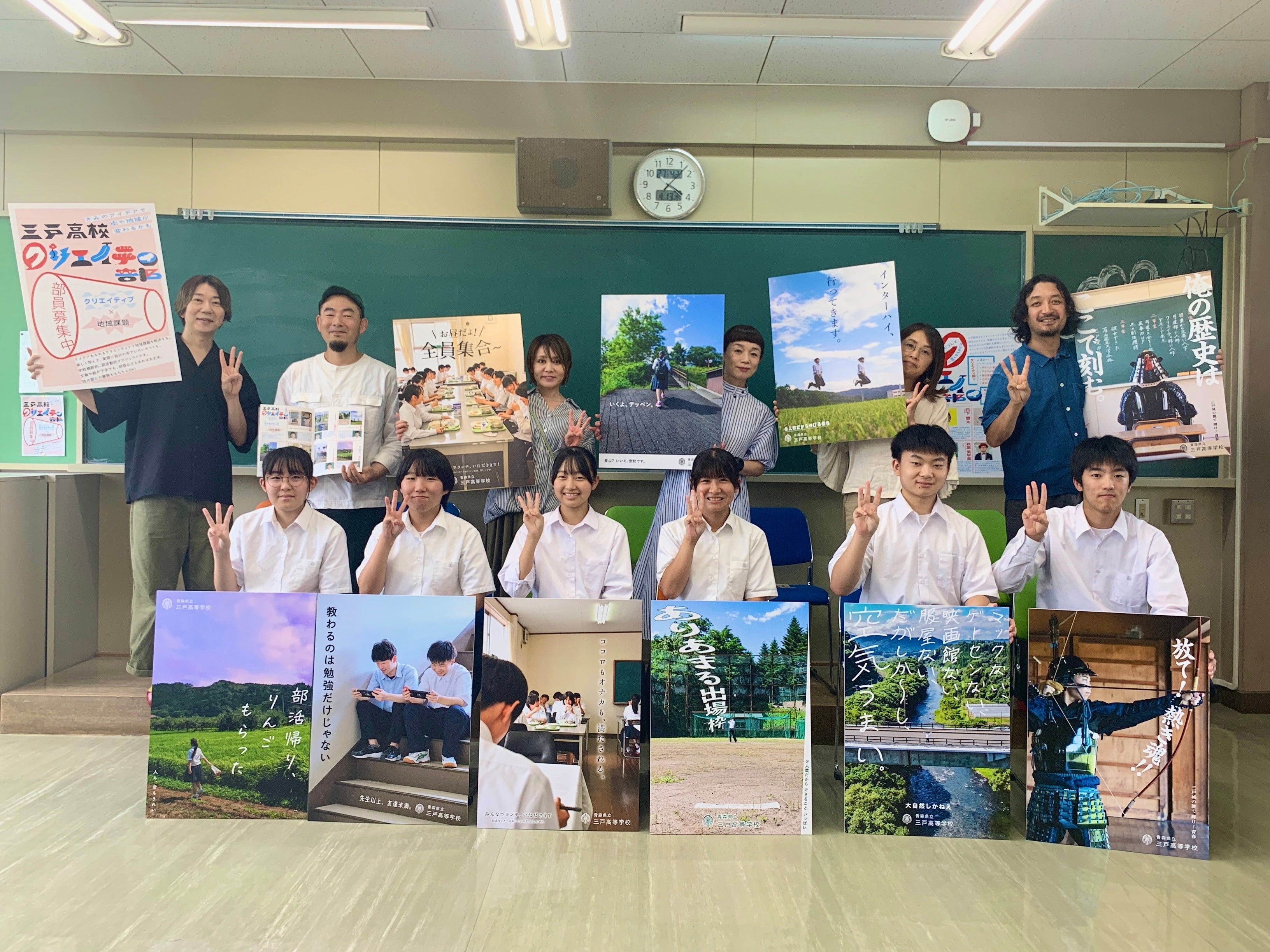 人口減や少子化により今は学年で1クラスになり、全国から生徒を募集することになった青森県立三戸高等学校。高校の独自性を出していこうと、生徒みずからがクリエイターとワークショップを重ねて、高校の魅力を紹介するポスターとパンフレットを制作しました。