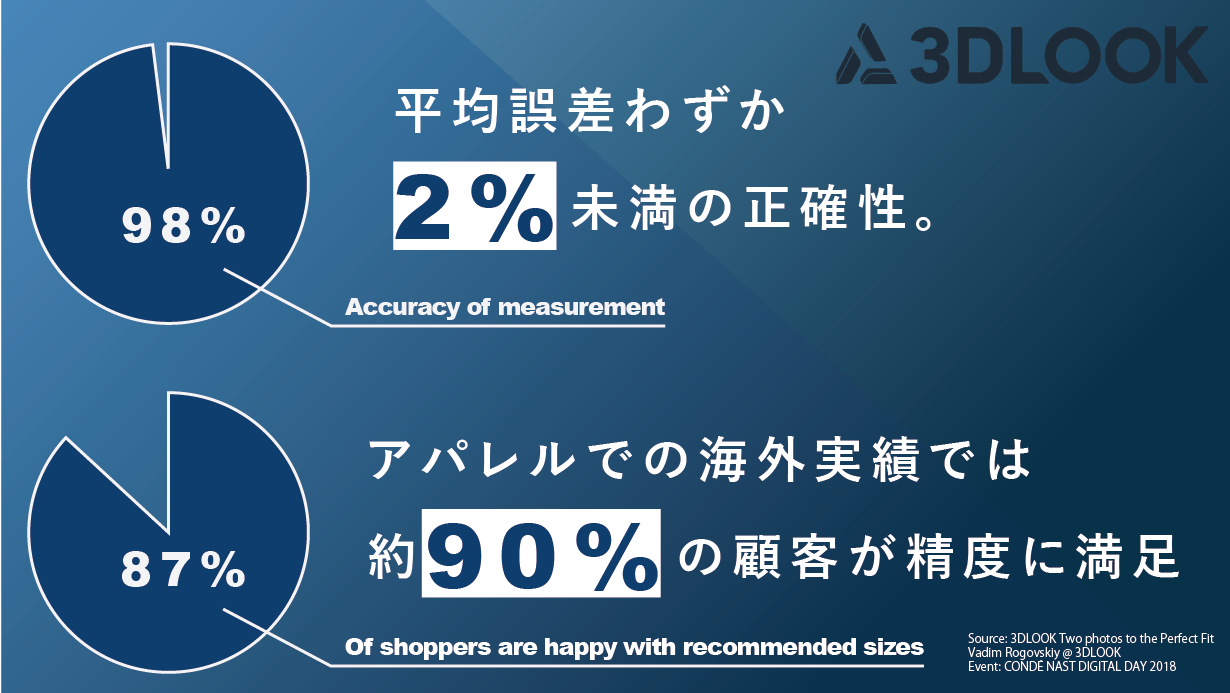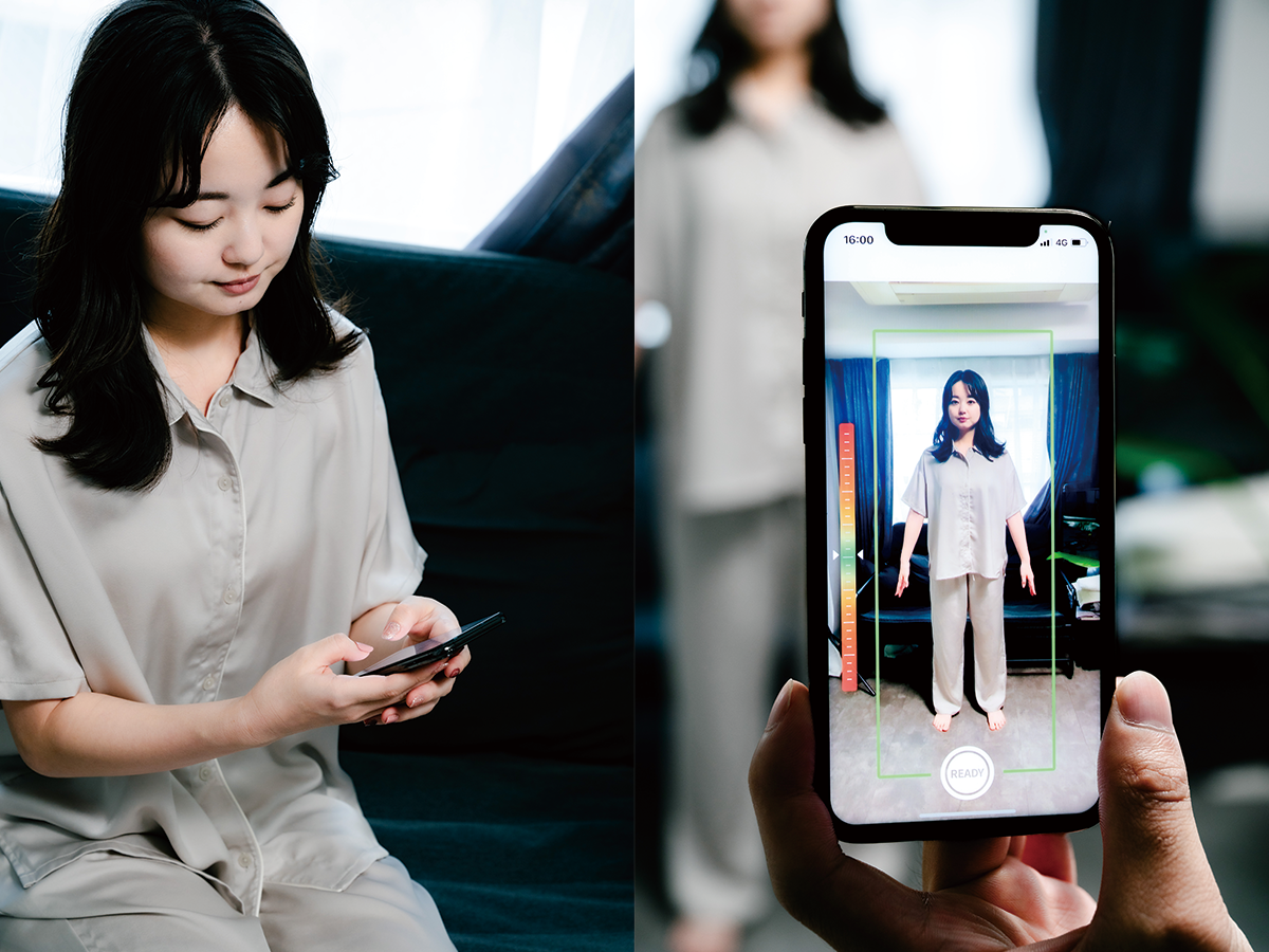 「写真を撮るだけで、本当に正確な数値が取れるのか」と心配な方もいらっしゃると思いますが、「tAIlor pillow」は3DLOOKという世界有数の特許取得済み技術を応用したAI全身測定システムを利用しております。