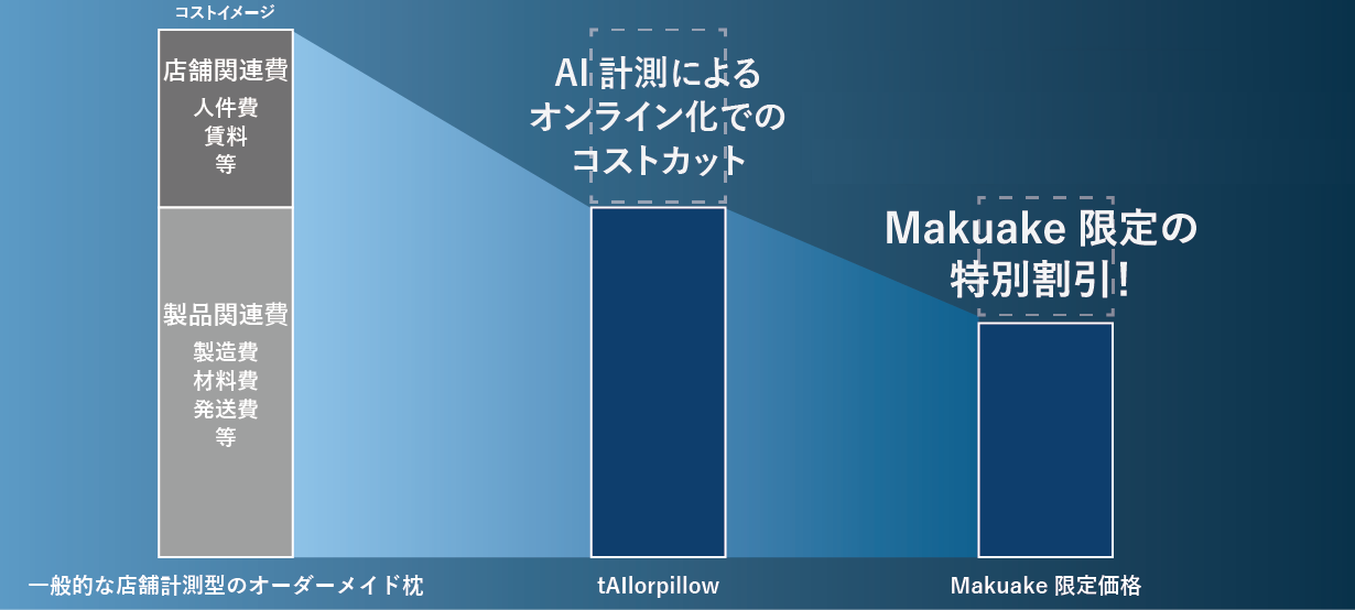 さらに「tAIlor pillow」は実店舗を持たないことで人件費も抑えられ、一般的なオーダーメイド枕と比較し、低価格を実現しました。