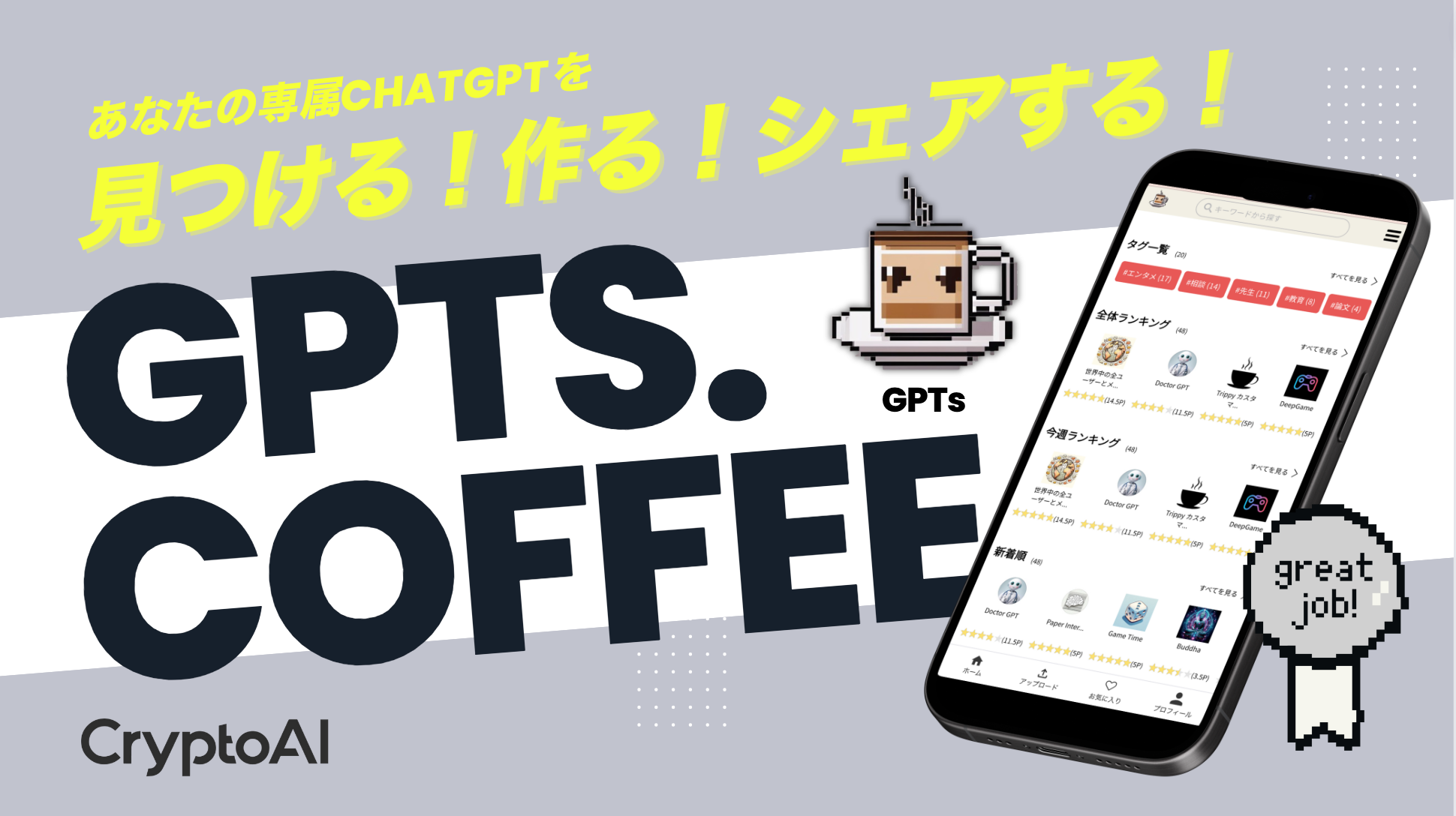 最先端AIユーザー待望!GPTs専門サイト「GPTs coffee」で評価と使い方を完全網羅、ニーズに合ったGPTをタグ検索でピンポイント CryptoAI株式会社がリリース