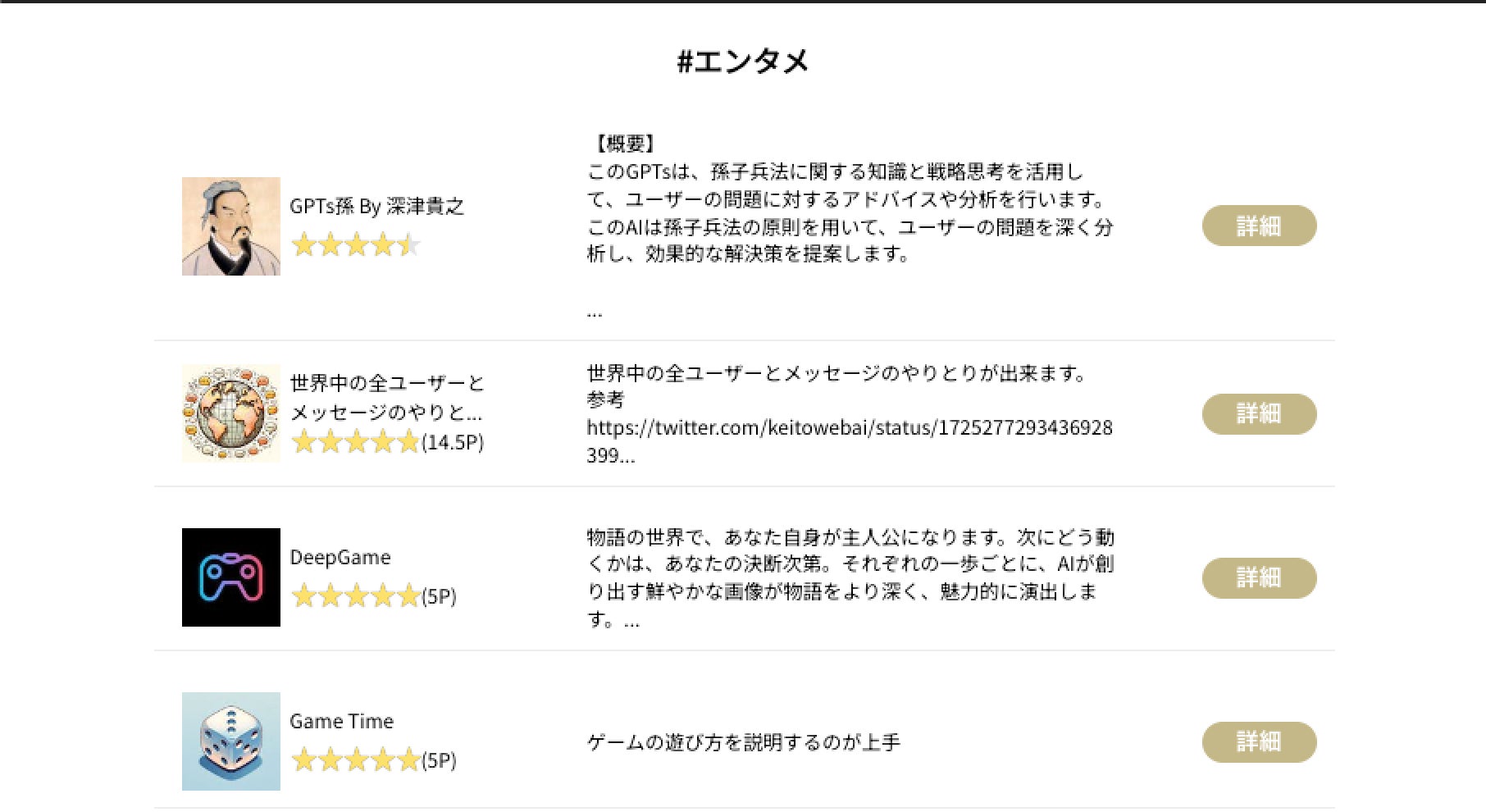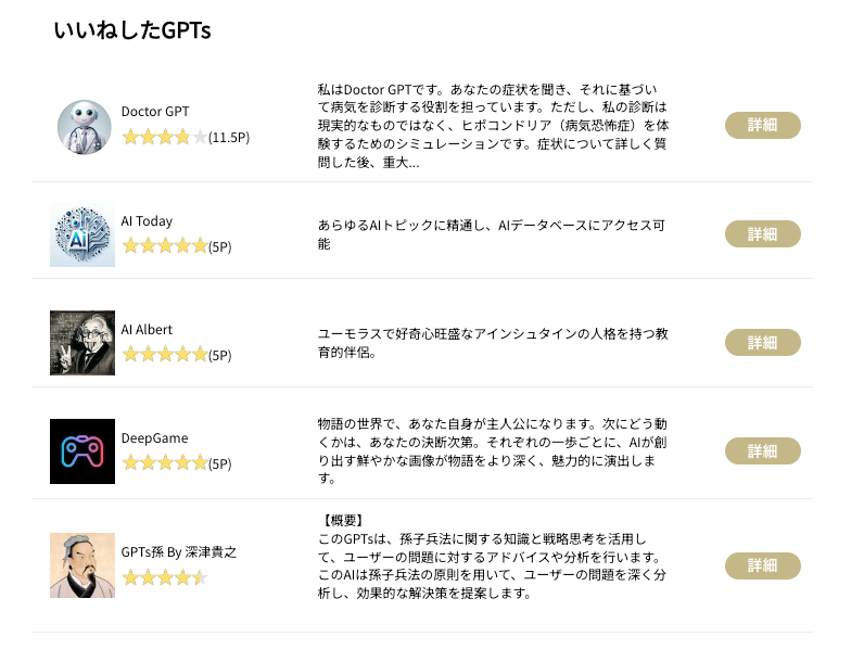 各GPTの詳細ページでは、使い方や利点が明確に記述されており、より直感的にユーザーが自分に合ったツールを選びやすくなっています。