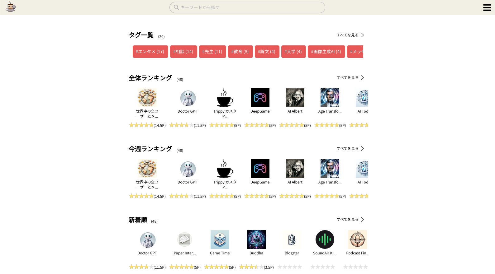 ●タグに基づく検索システムで、目的に合ったGPTを迅速に発見。