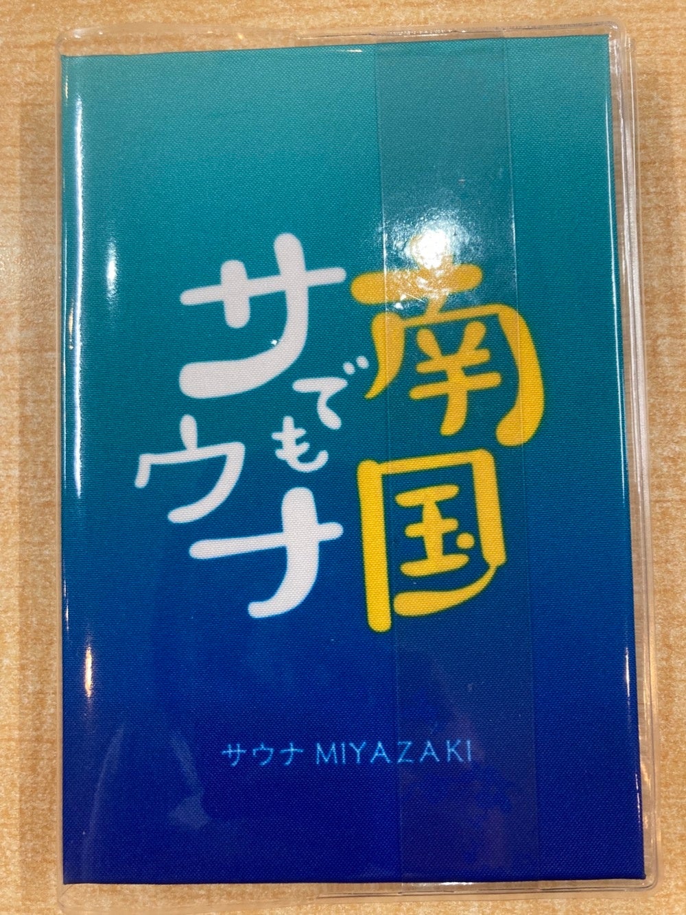 御朱印帳は、大きく分けて「蛇腹」「和綴じ」の2種類がありますが、「南国からサウナ朱印帳」は蛇腹の帳面です。宮崎の海と空をイメージした青色と、日本地図がサウナ旅へいざないます。