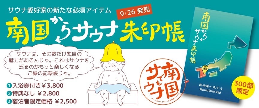 宮崎県のビジネスホテル「宮崎第一ホテル」(所在地:宮崎県宮崎市橘通東5-4-14 代表:大山直樹 オオヤマナオキ)は、「南国からサウナ朱印帳」を令和5年9月26日(火)に発売します。