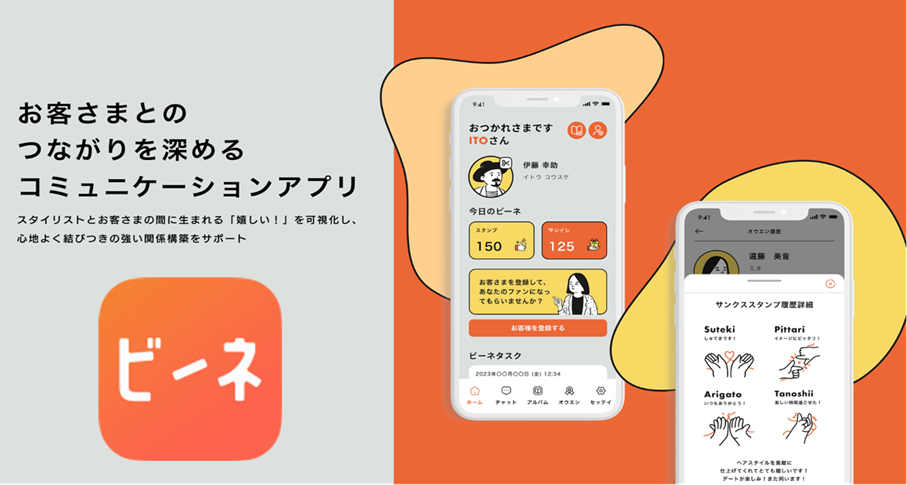 事業:ヘアスタイリストとお客さまとつながりを深めるコミュニケーションアプリサービス「ビーネ」の提供