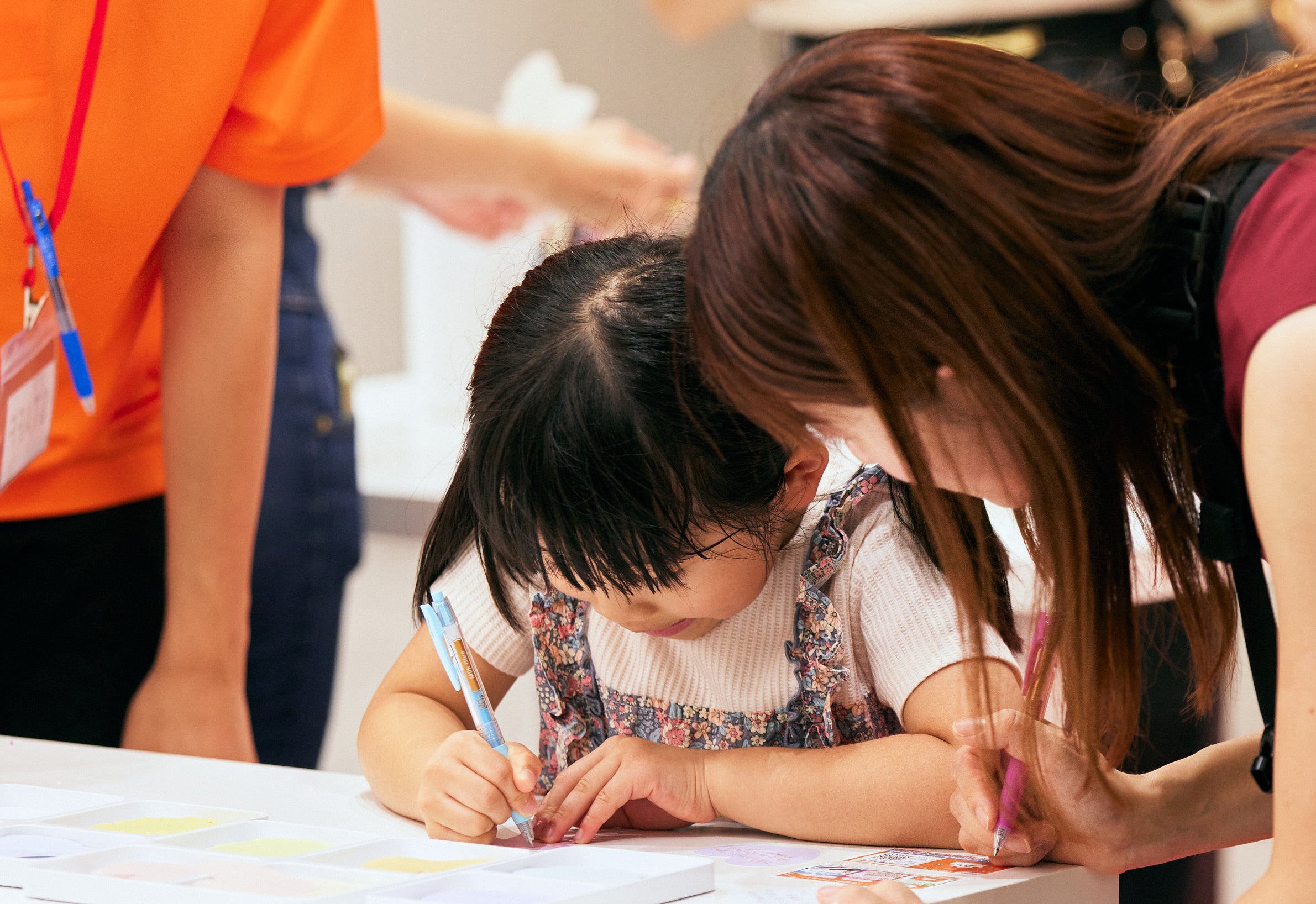渋谷マークシティ マークイベントスクエアにて、9月16日(土)、サラサクリップ20周年イベントを実施しました。会場では「たくさん色があって楽しい!」や「もらったサラサを早速学校に持っていこう!」といった声が聞かれました。