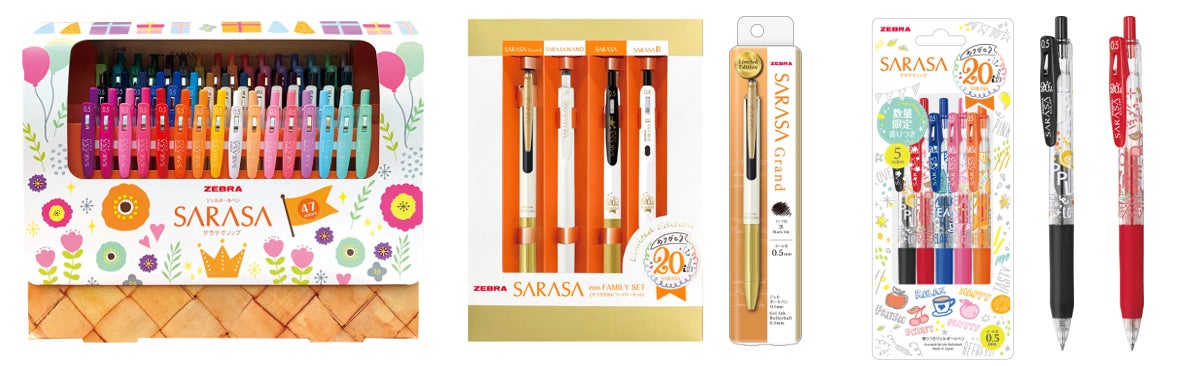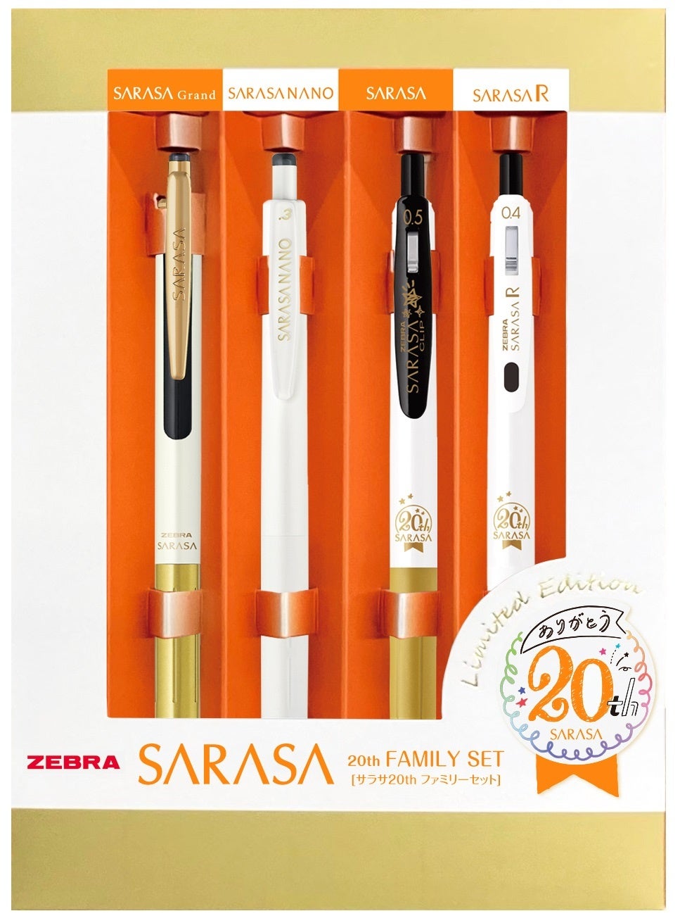 20周年を記念したサラサクリップ、サラサR、サラサナノ、サラサグランドが揃った限定セット。サラサファミリーそれぞれの特長を楽しめます。