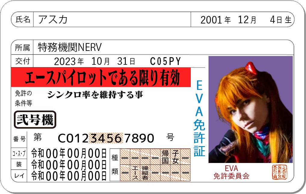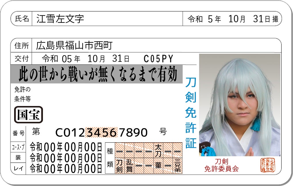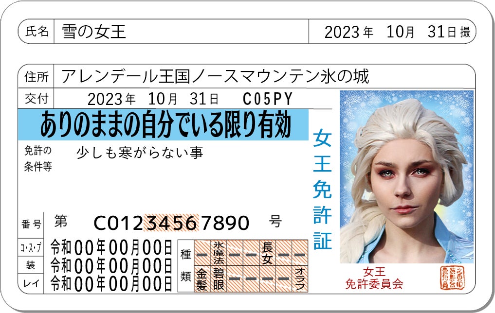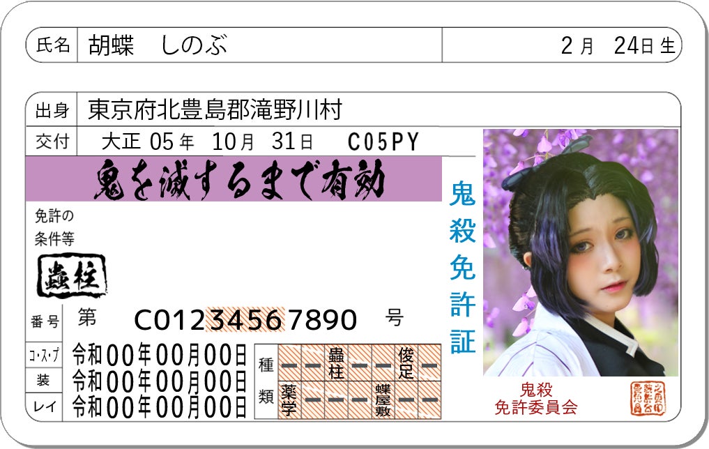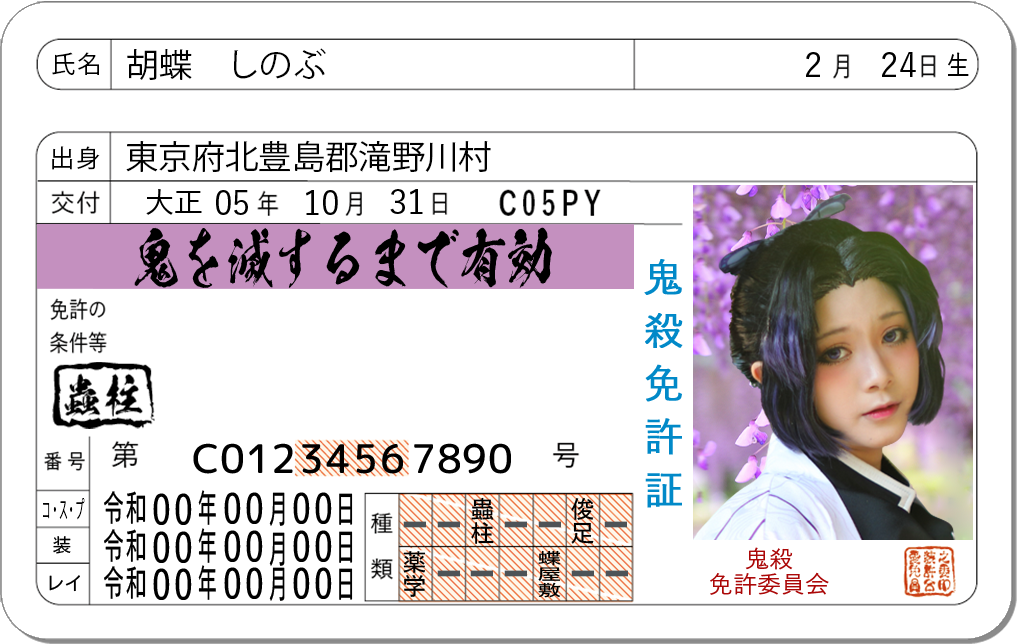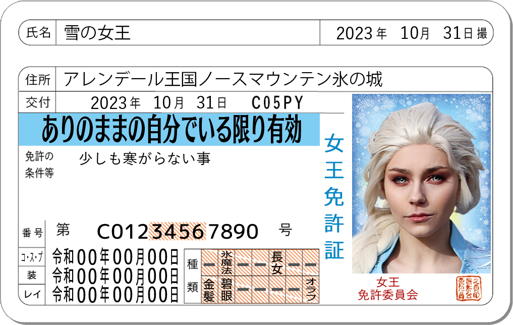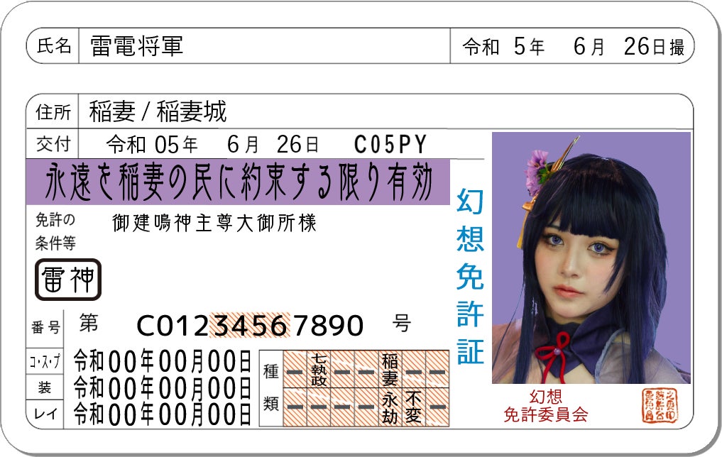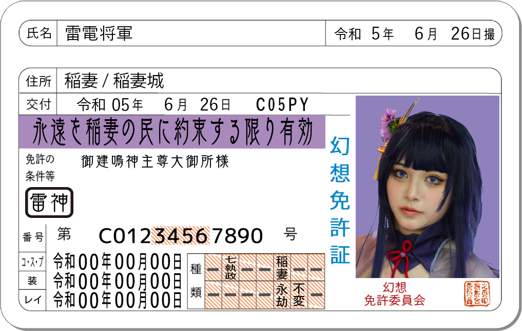 貴方がコスプレで表現する世界観を「免許証」のカタチにしてみましょう。