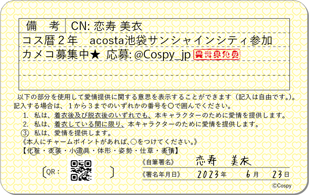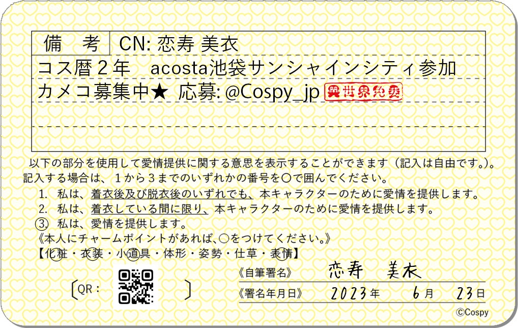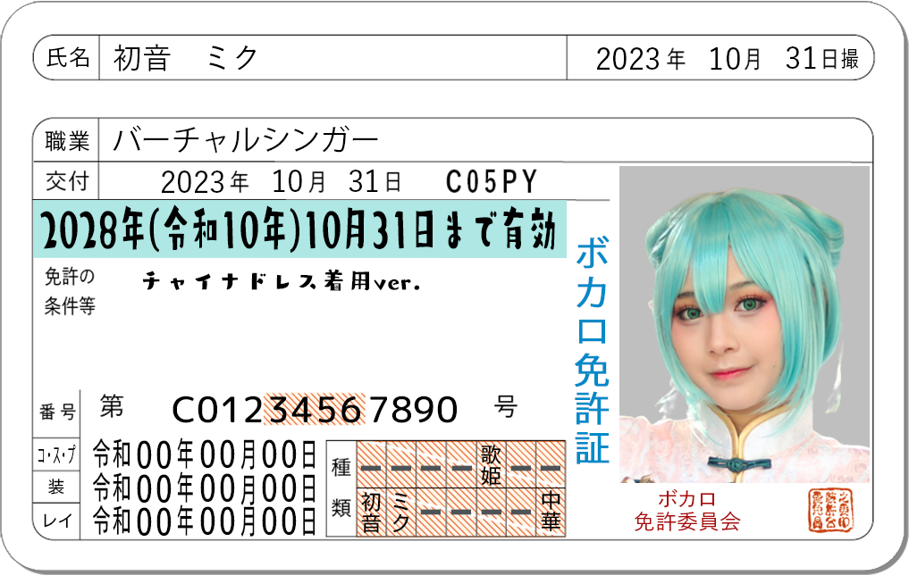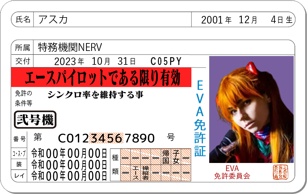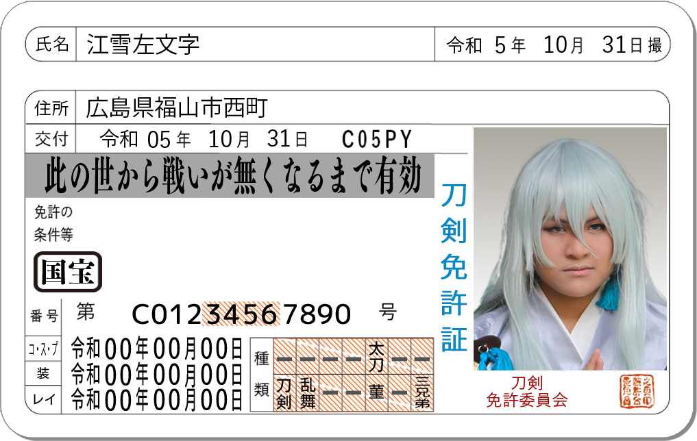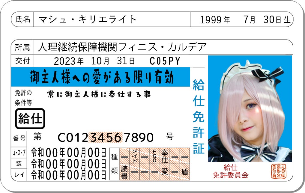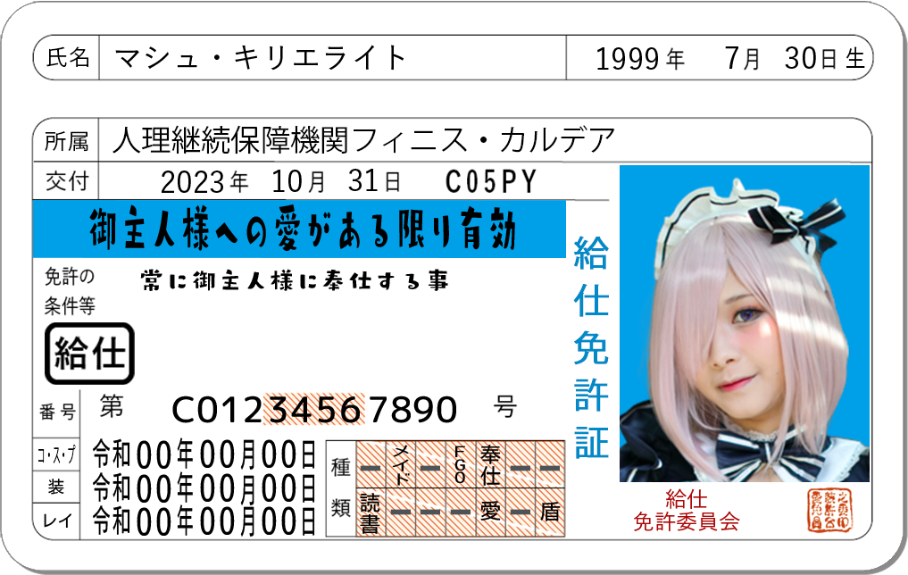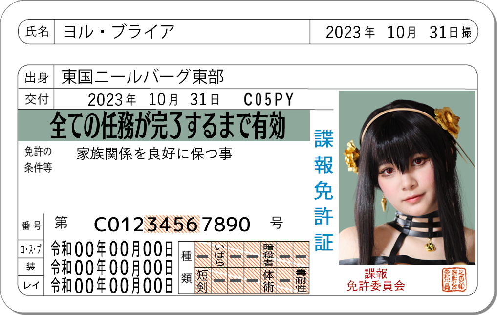 貴方がコスプレで表現する世界観を「免許証」のカタチにしてみましょう。