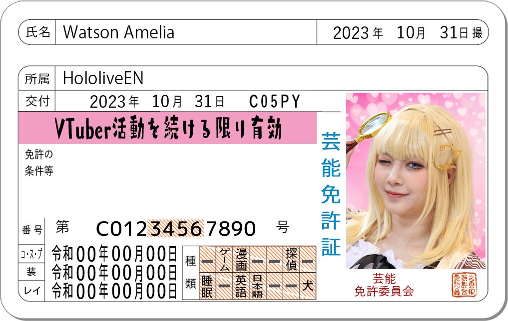 コスプレイヤーが創り上げる世界観を現実世界の免許証のフォーマットに落とし込むことで、2次元と3次元の狭間「2.5次元」感を表現できるアイテムです。