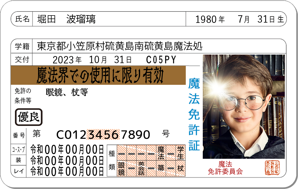 コスプレで表現する世界観を「免許証」のフォーマットに落とし込むことで、ユニークなオリジナルグッズを創作できます。