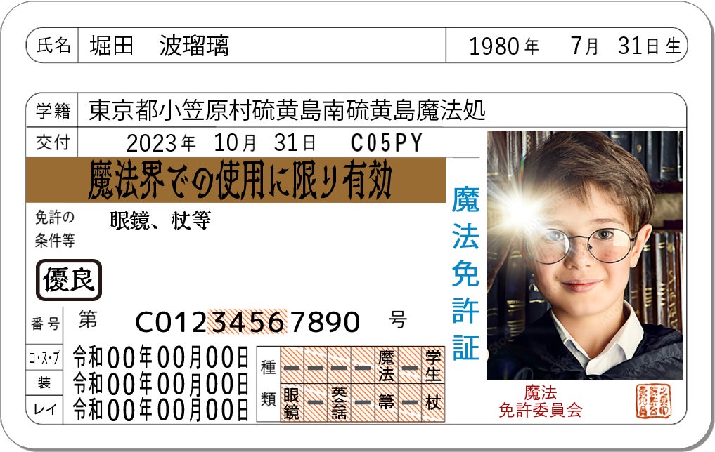 写真+αを記載できる「免許証」のフォーマットに貴方の世界観をいかに表現するか、貴方の個性と創造性を存分に発揮できます。