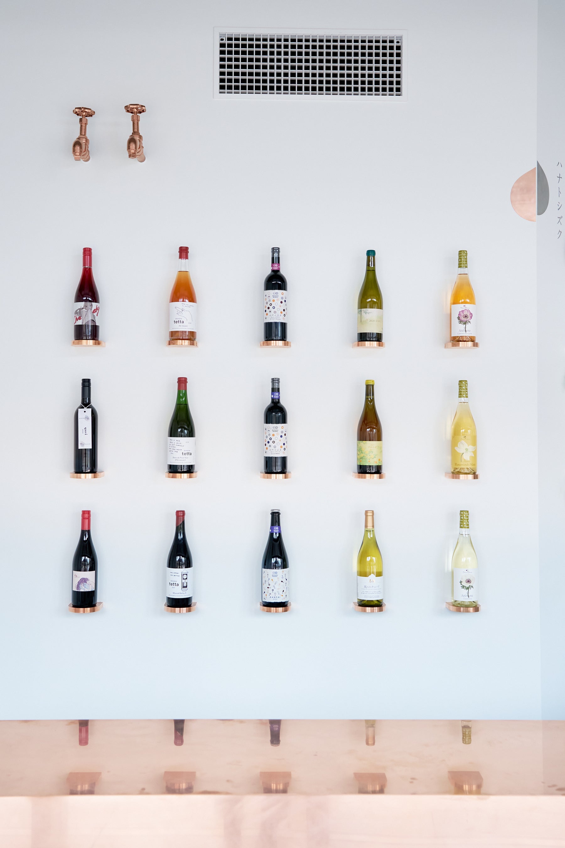 また、店舗では自然派ワインを専門に扱い日本ワインに関する著書をもつ大野明日香をディレクターに迎え、オーナー林と共にセレクトした日本各地の国産ワインを取り揃えます。店頭で一杯からスタンディングスタイルで楽しむことができ、気に入ったワインはボトルで購入することも可能。一期一会のワインとお花のマリアージュを楽しんでいただけます。